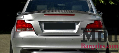 And of course, one of the other great ways to give your rear end an aggressive accent is with a spoiler. We offer the OEM BMW Performance Carbon Fiber Trunk Spoiler for E82 BMW 1-Series here, which fits perfectly and adds an aggressive accent to any 1-series.