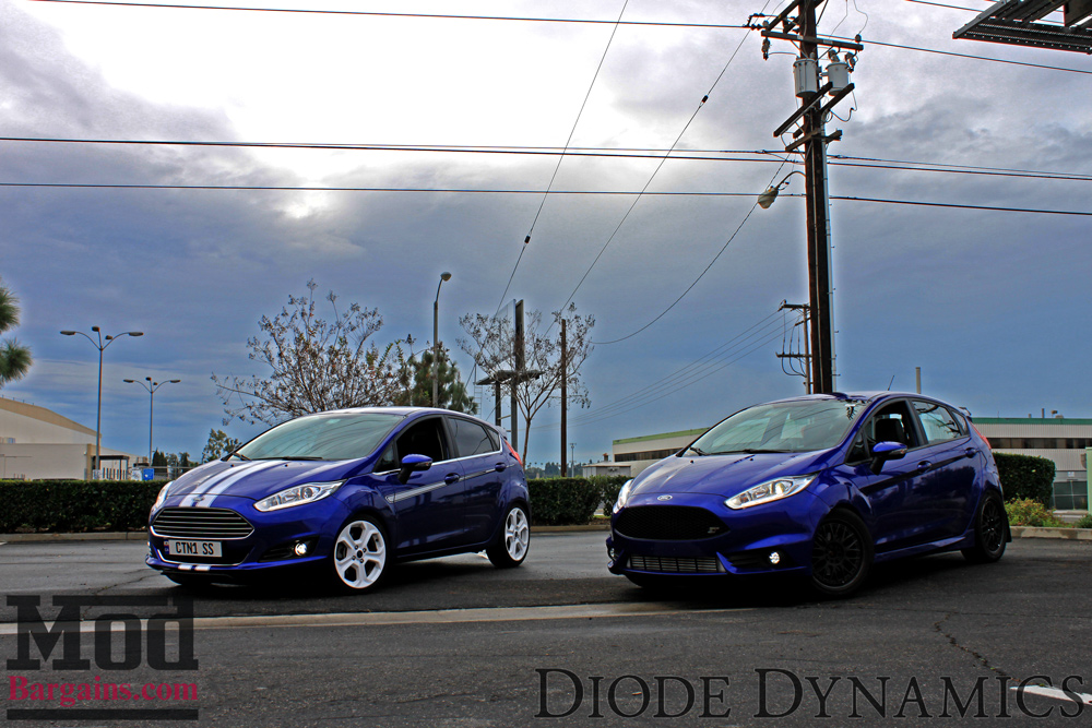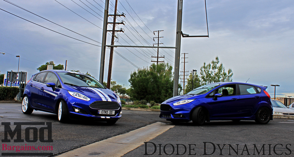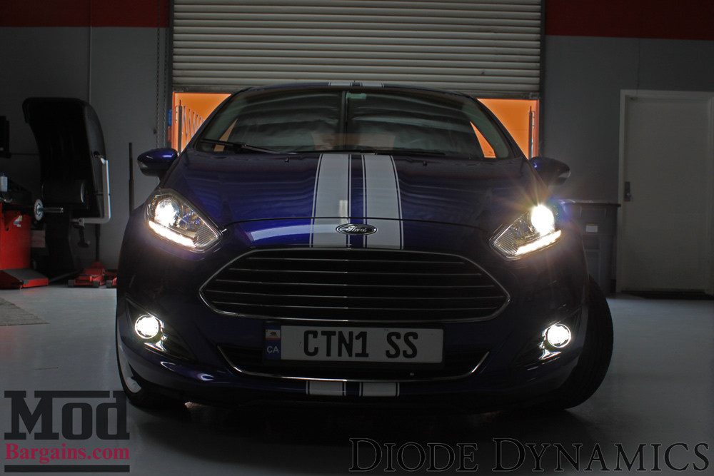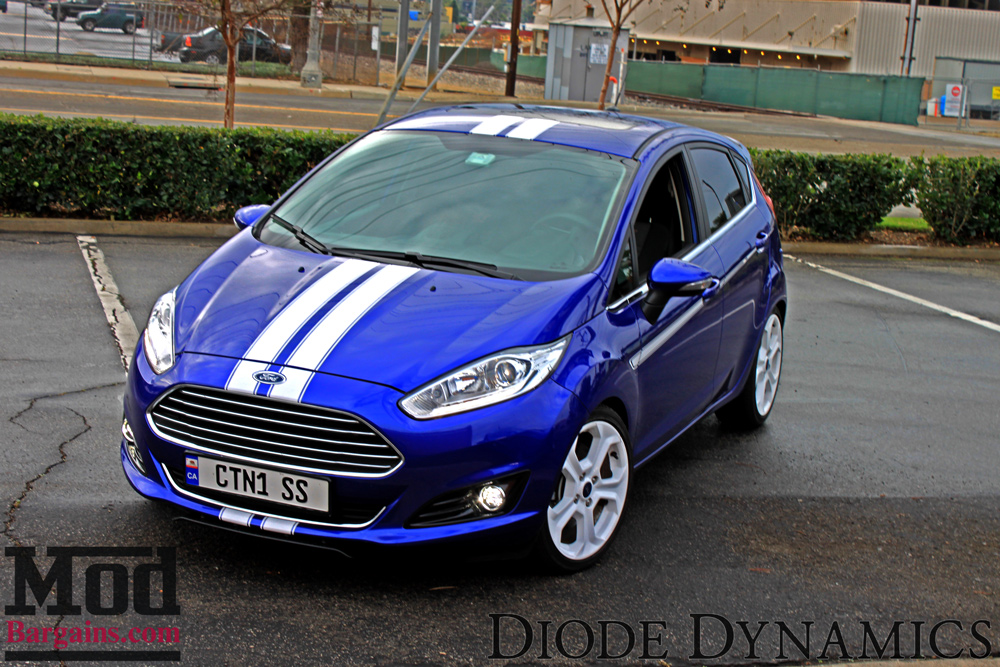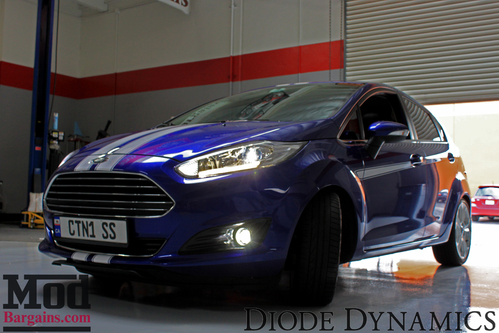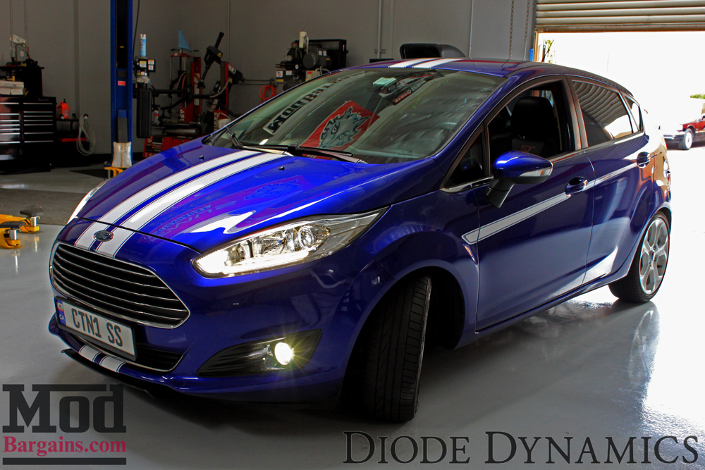 So, since it was bright out, we did the only sensible thing we could – we took some awesome photos. Take a look at how Aaron’s Fiesta looks with the Diode Dynamics Luxeons LED Fogs fitted.