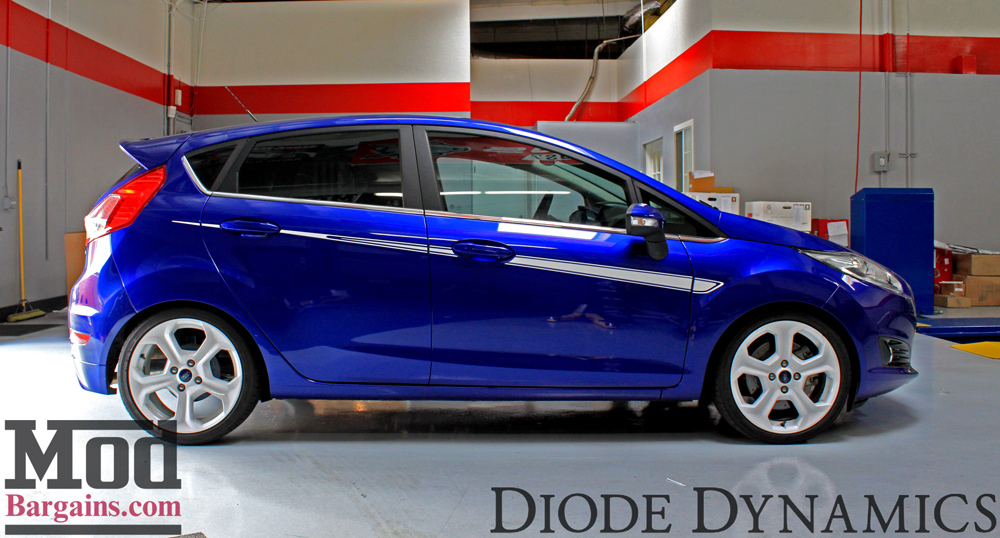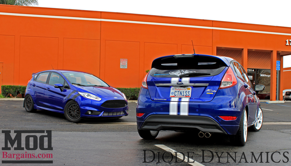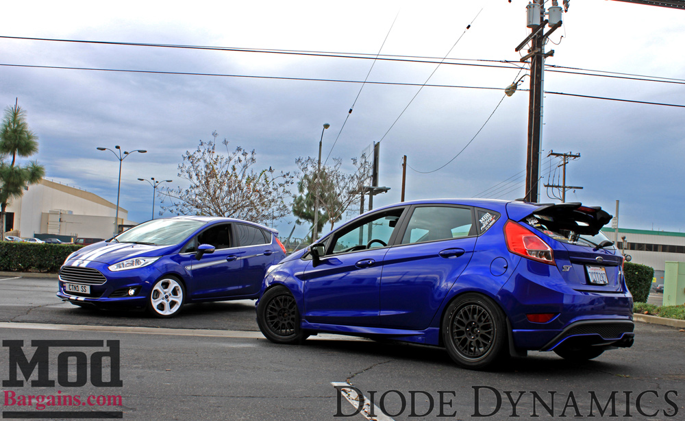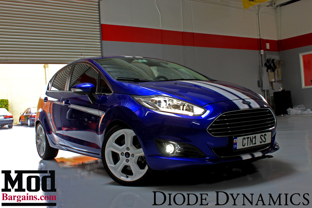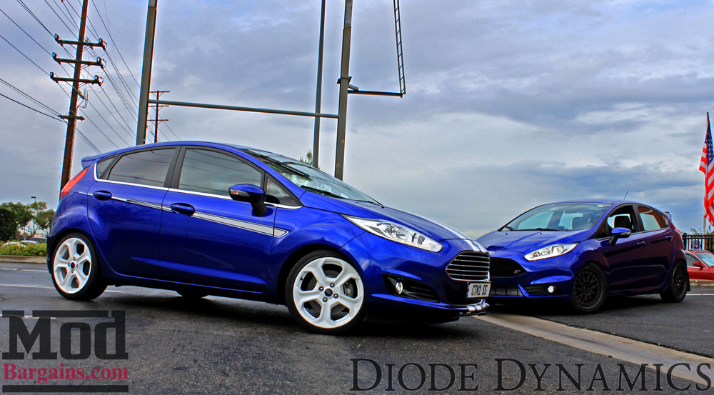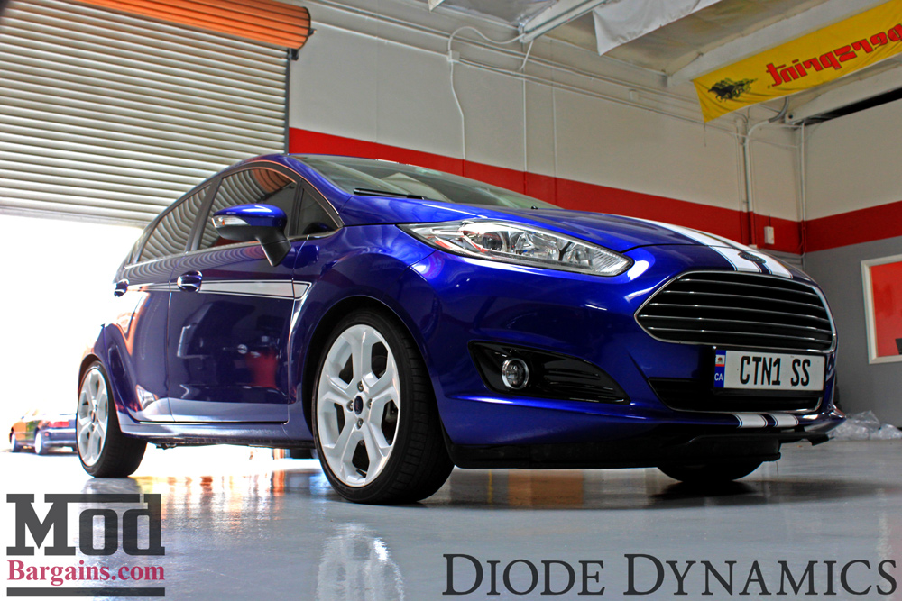 So, since it was bright out, we did the only sensible thing we could – we took some awesome photos. Take a look at how Aaron’s Fiesta looks with the Diode Dynamics Luxeons LED Fogs fitted.