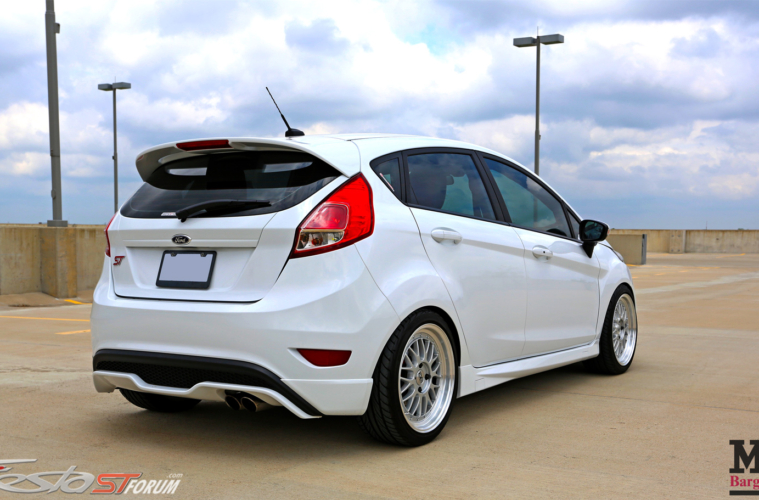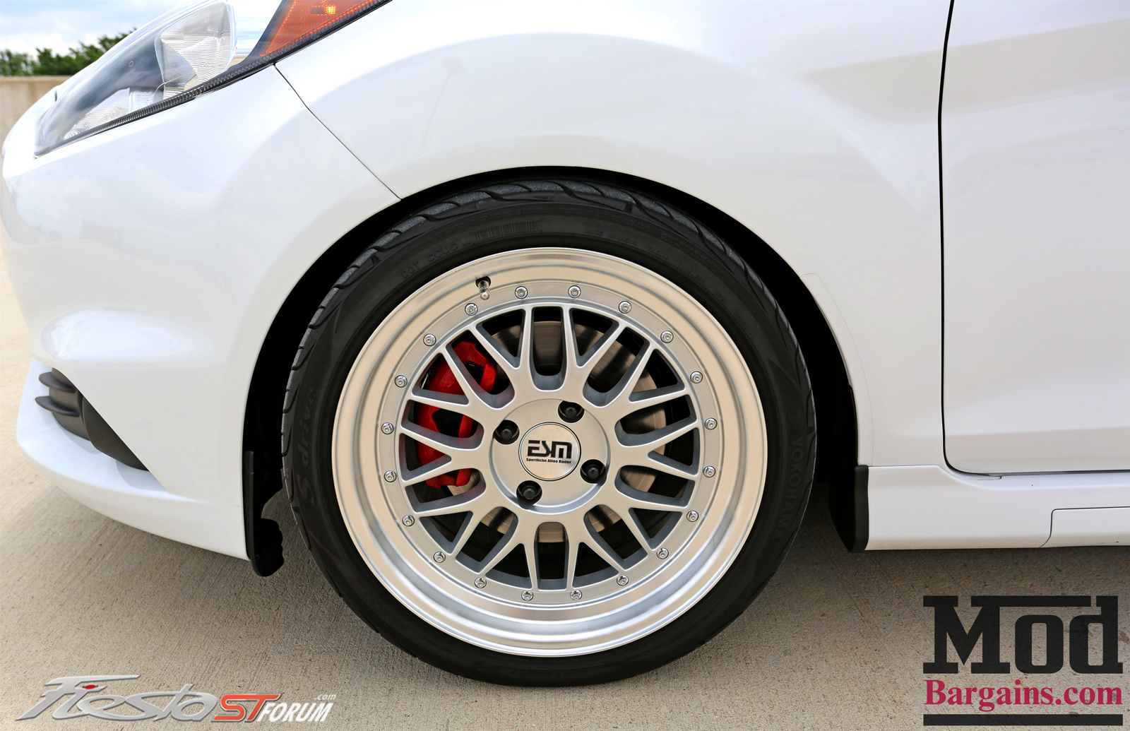 Zach, an involved member of the Ford Fiesta ST enthusiast community, FiestaSTForum.com, wanted something to set his Fiesta ST apart from the other Fiestas on the road. While the Fiesta ST‘s unique front and rear bumper fascias give it a sporty edge, the factory wheels leave something to be desired – and thanks to the Fiesta’s 4×4.25″ lug pattern, finding wheels can be a challenge. That was until he stumbled across ESM Wheels‘ wheel gallery and knew he’d found what he was looking for. Stylish and sexily styled, ESM-004 Wheels For Fiesta ST are available in the Fiesta’s 4x108mm lug pattern – and after checking a few things to ensure he’d have clearance, pulled the trigger and ordered a set.