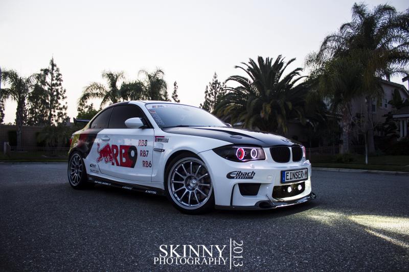 Modification Expert Kirk Villeneuve picked up his BMW E82 1-Series back in October of 2011. Once receiving his beautiful 1-Series, straight from Germany, he instantly went to work, mapping out how he wanted to build his new toy. As the months went by, the car slowly transformed. Kirk put in a lot of footwork to set up sponsorships with many companies developing products for the then-new platform, and in return he attended tons of car meets and shows, marketing their products for them. Over the course of a year and half, Kirk lived up to his current title as Modification Expert, having completely changed the look of the 1M into a race inspired beast of a car. All told, a lot of sweat, effort and money resulted in a total of $35,410 worth of parts invested to turn this 1-series into a uniquely aggressive 1M.