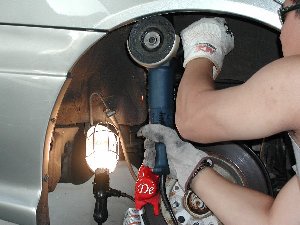 Earlier we mentioned that negative offset moves the face of the wheel closer to the inside of the wheel well, therefore pushing the entire wheel’s width out of the car. If you get a wheel with an offset that is too negative for your car, prepare yourself for some careful and precise work. If the lip of your wheel starts to poke out of the fenders, depending on your fitment preferences, you may want to roll and stretch your fenders to compensate for the possible fender scrapeage you will get from the travel of your suspension. Do you want scraping? Absolutely not! It can damage both your wheels and your fenders- a sharp metal fender will slice right through a spinning tire’s sidewall like a hot knife through butter.
