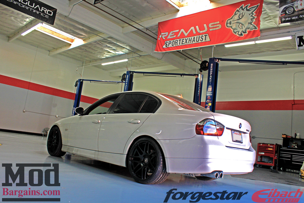 In addition to the drop in ride height, the Mod Experts also spec’d out a set of new wheels for BMW E90 as well – a set of Forgestar F14 wheels for BMW, in 19×8.5 et32 / 19×10 et38, wrapped in 235/35-19 265/30-19 Hankook Ventus V12 Evo 2 tires.