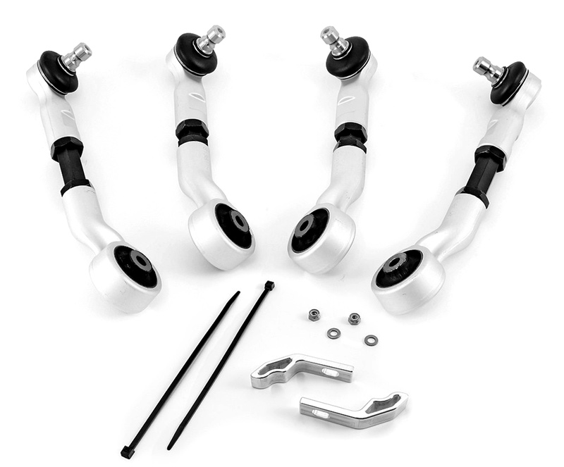 Before we move on, once you’ve lowered your Audi A4, the lack of camber adjustment in the factory control arms can make it difficult to align the car properly. SPC Performance in collaboration with AWE Tuning have developed an adjustable control arm kit that corrects the premature tire wear and imperfect handling created by out-of-spec camber as well as the problem of the control arms rubbing against the important and expensive wiring harnesses that run through both front fender wells. If you’ve lowered your B8/B8.5 Audi A4, a set of AWE Tuning/SPC Adjustable Front Control Arms for Audi B8/B8.5 is a preventive item you should really consider adding when you lower the car to prevent any issues later.