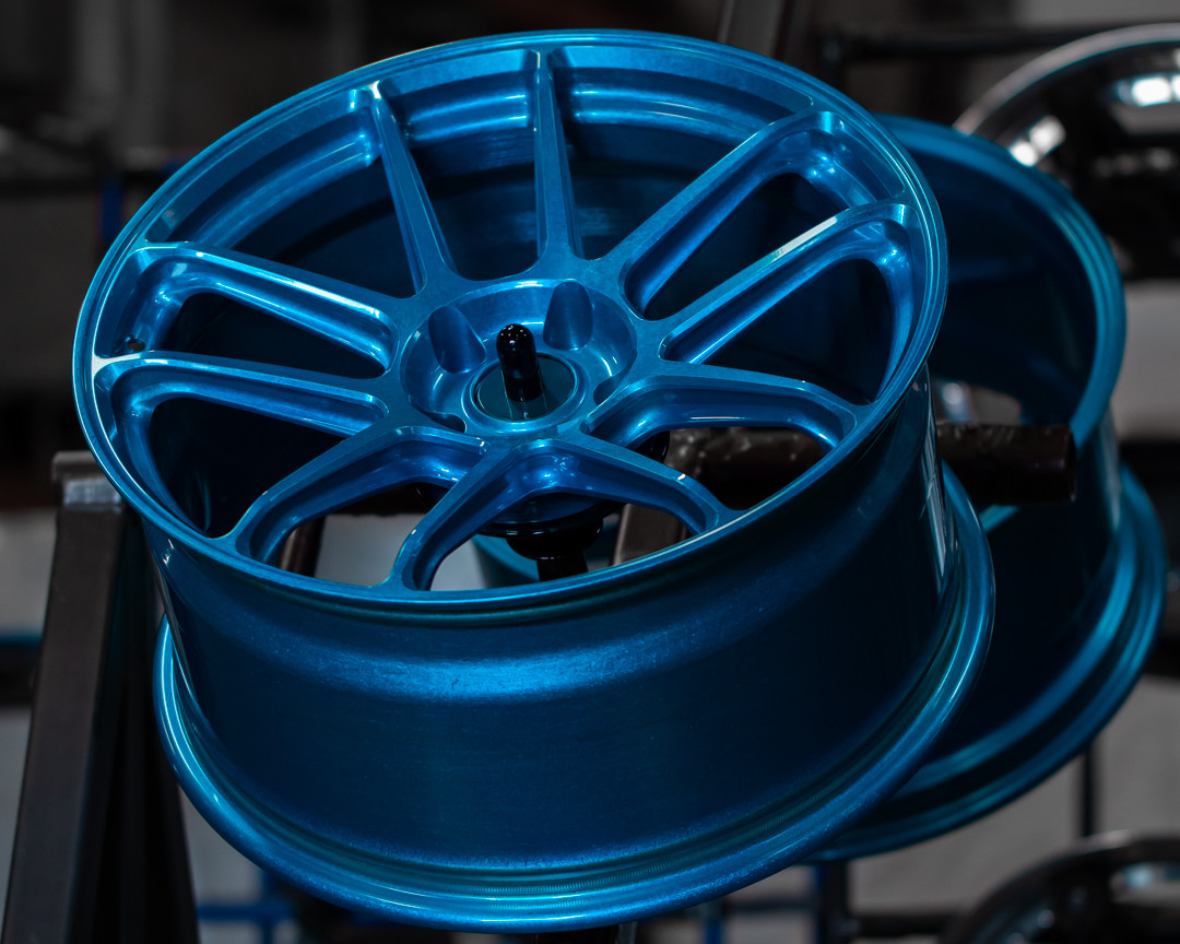 Once the tumbler cycles are finished, the wheels are thereby removed, cleaned, and prepped for powder coat. HRE opted for a wide variety of finish options for Stone wheels, to provide a premium array and appeal of finishes at a price that doesn’t leave a premium pain in your wallet.