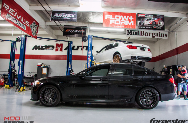 We’ve been working on this M5 for a while now, previously having installed the resonated GT version of the RPI Cat-Back Exhaust for F10 BMW , but today he came in to swap that out for something a little more aggressive with some assistance from Sr Mod Expert Alan.