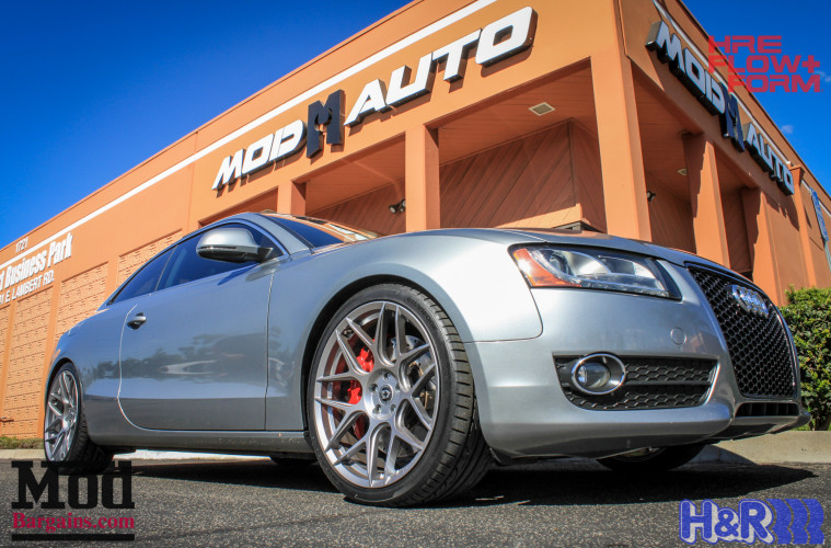 The OEM wheels weren’t terrible by any means, but they don’t really have a ton of style. So those were the first to go. Mod Expert Blake recommended a set of HRE FF01 Wheels for Audi.