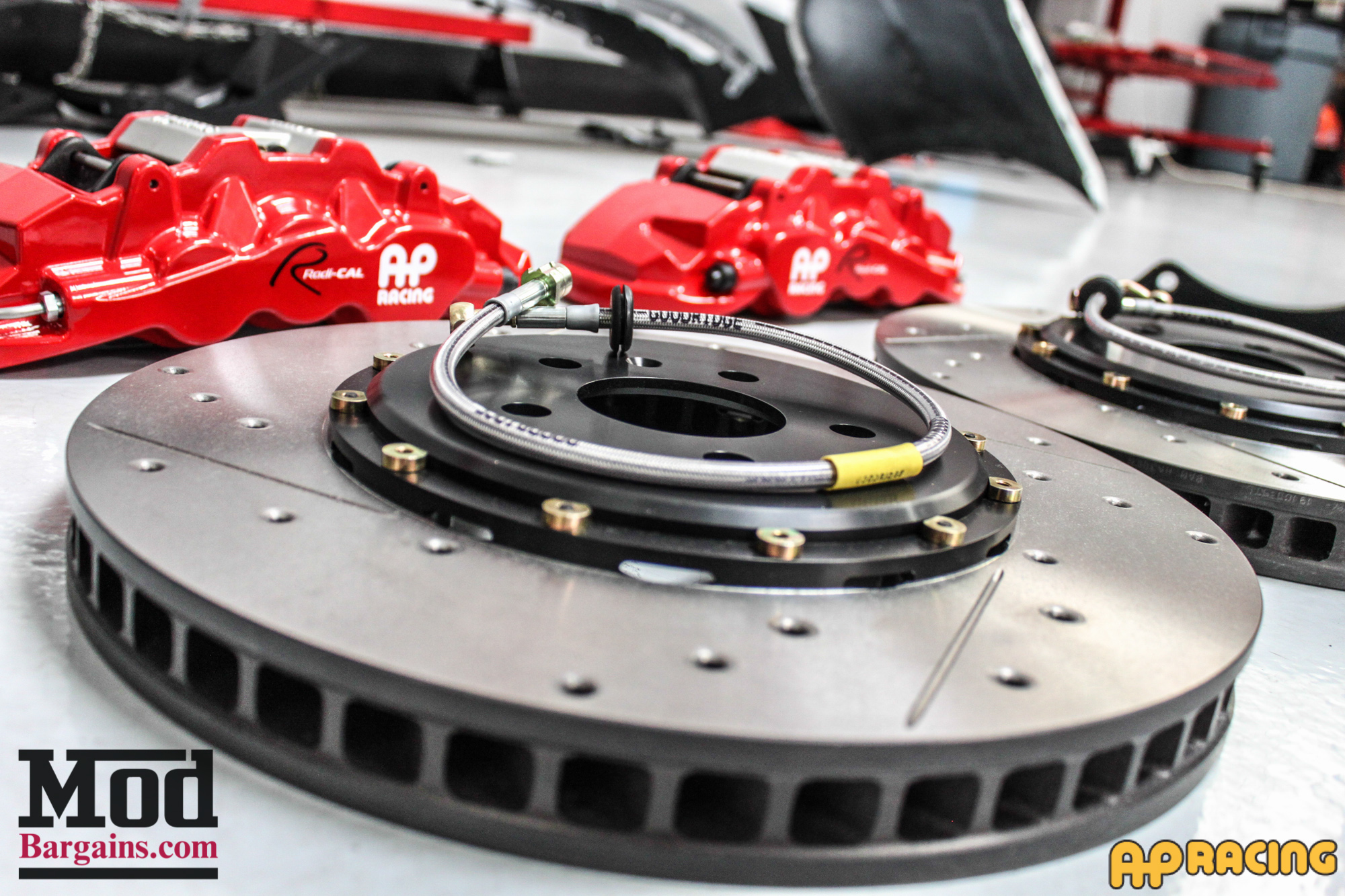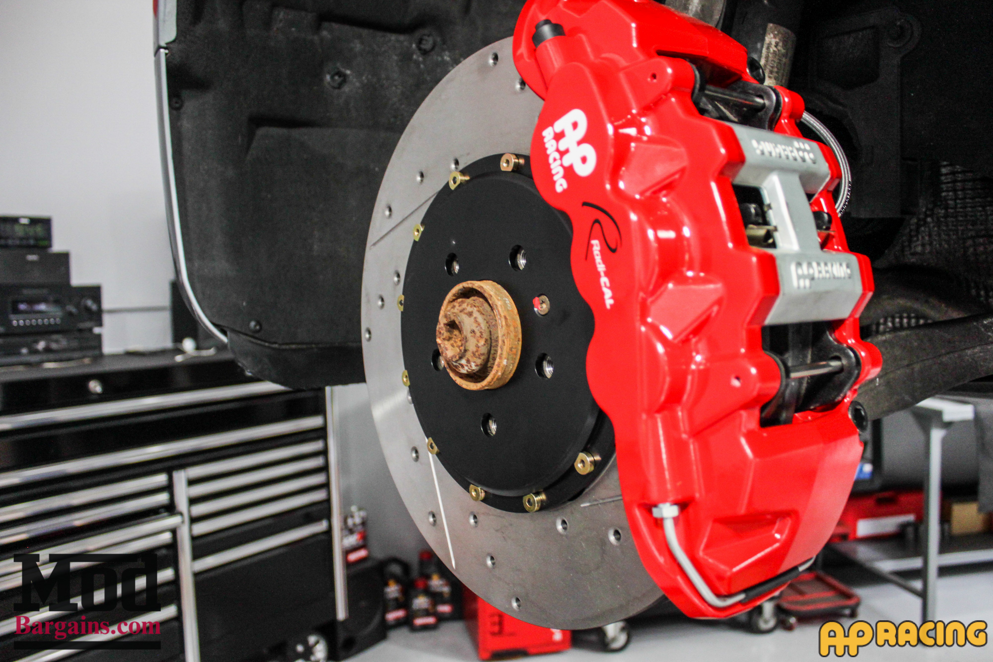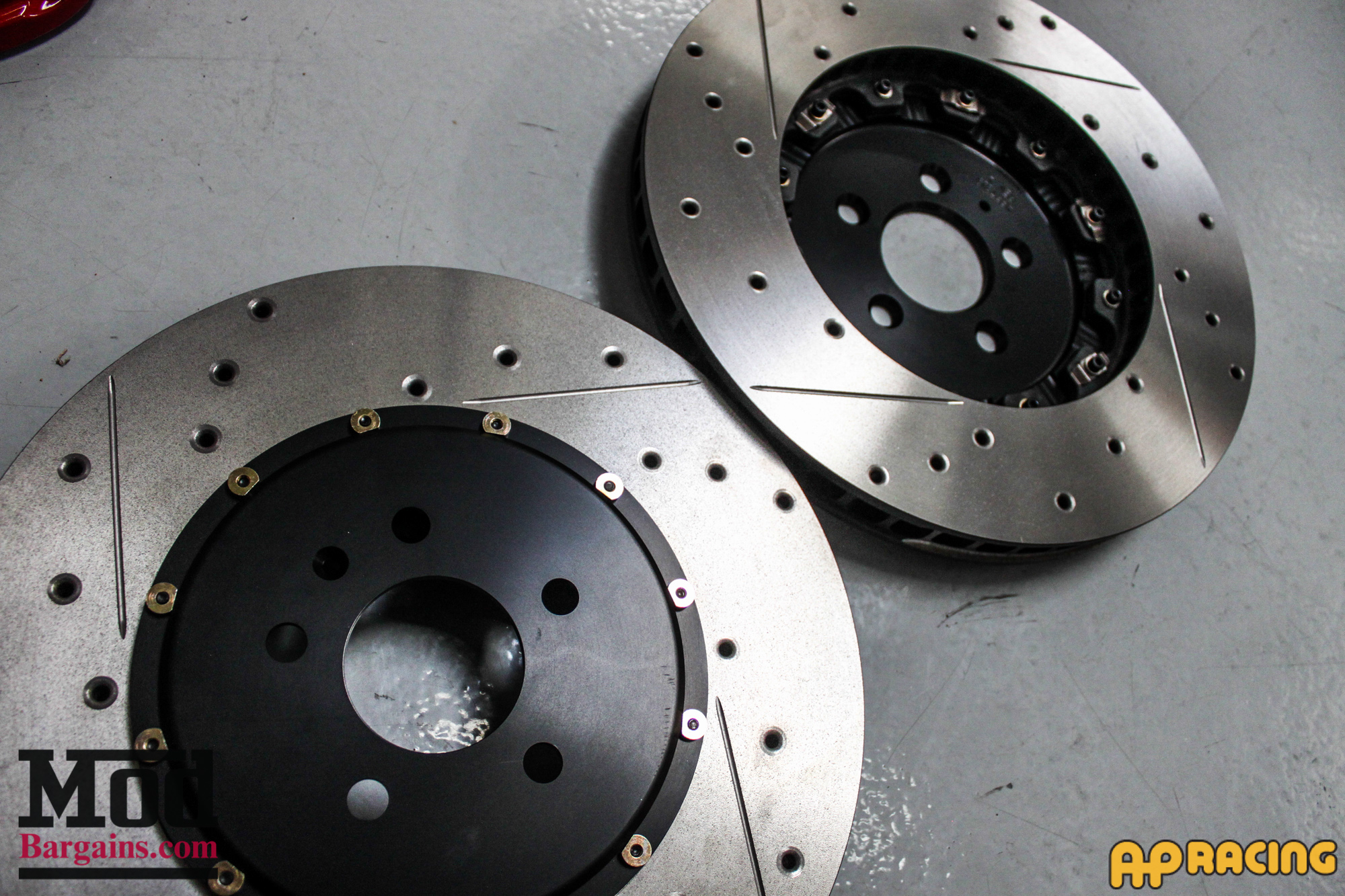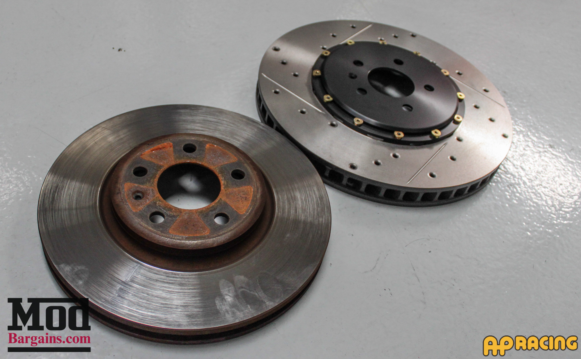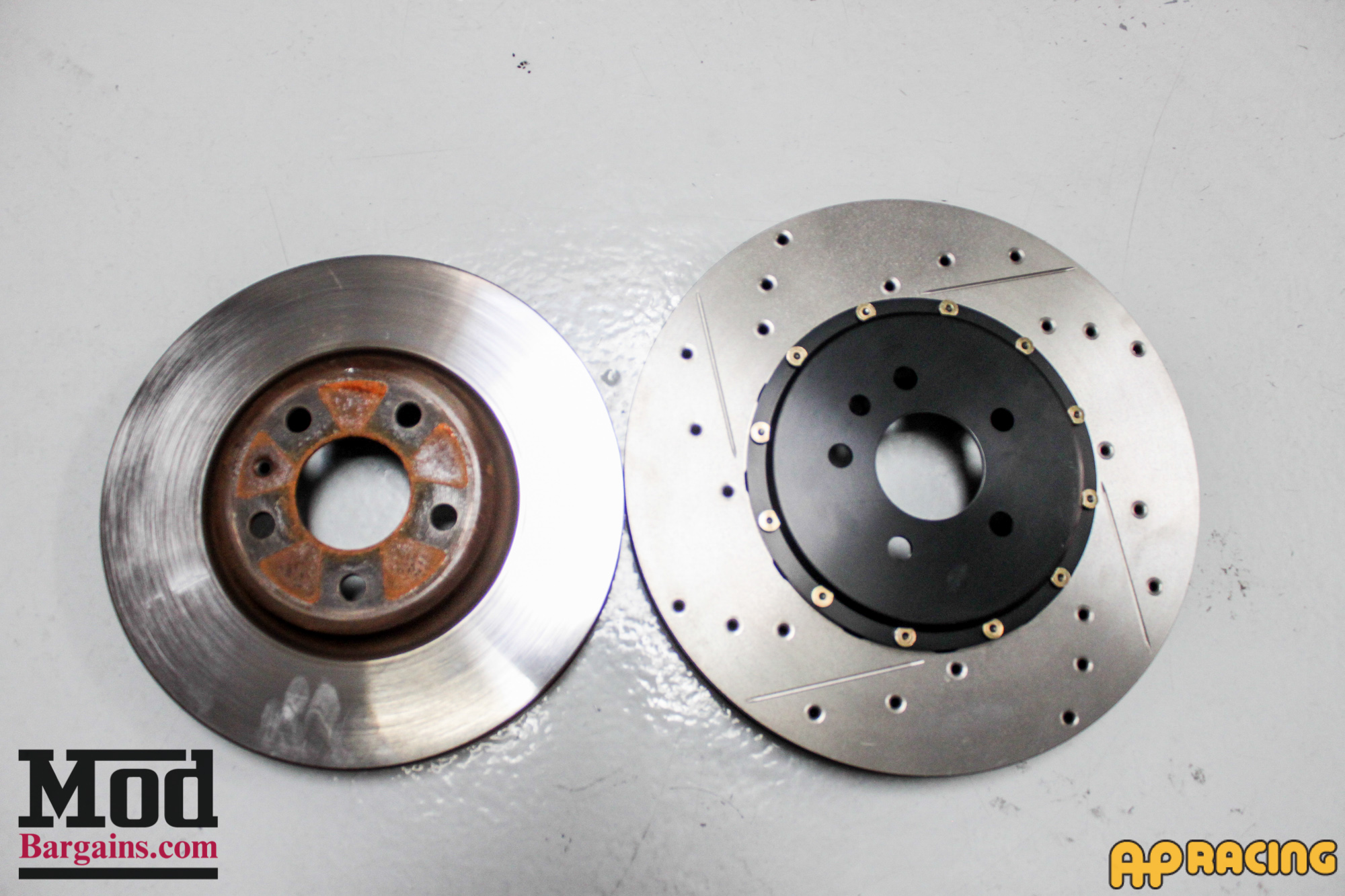 Check out this side-by-side comparison of the stock front rotors versus the AP Racing Big Brake Kit.