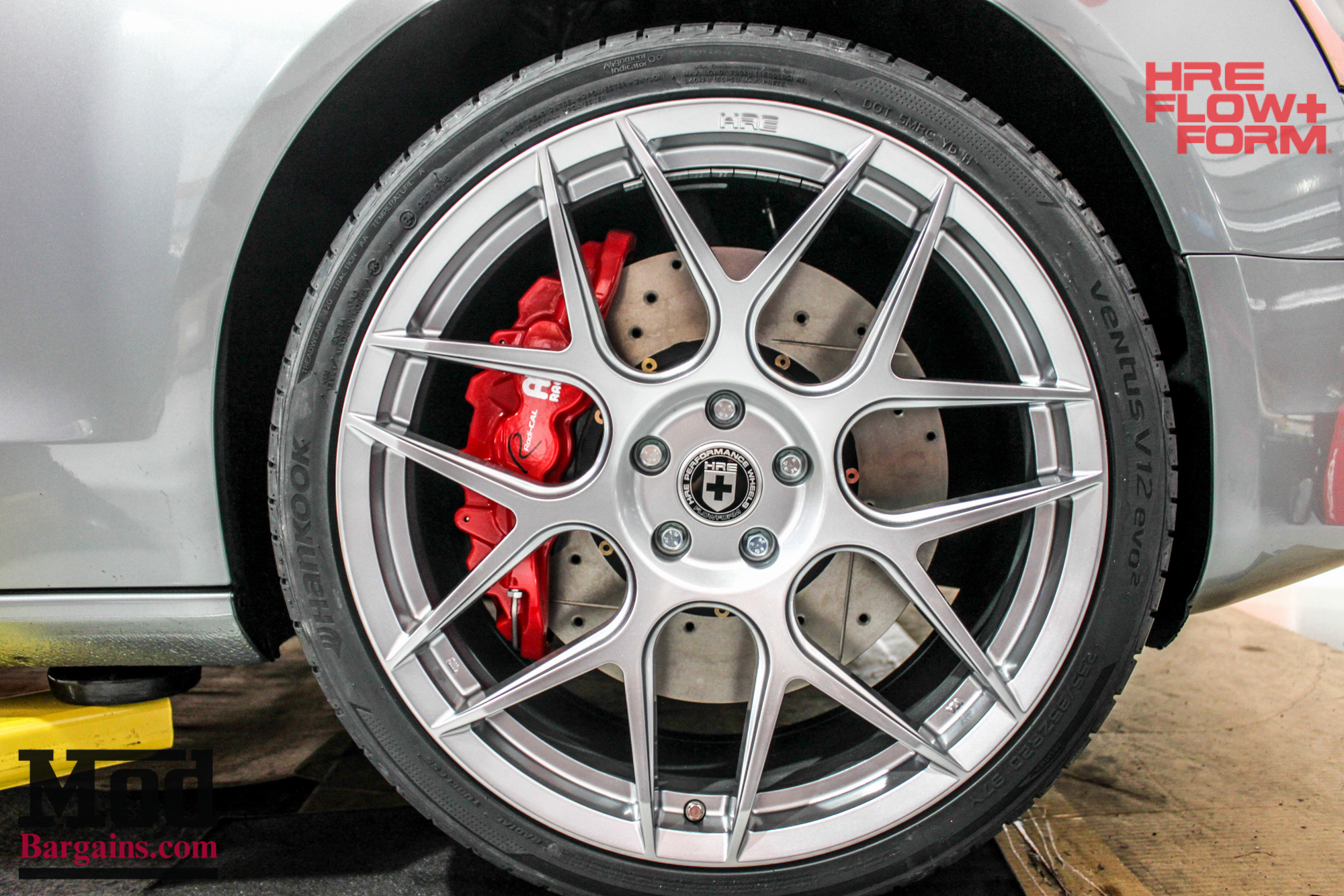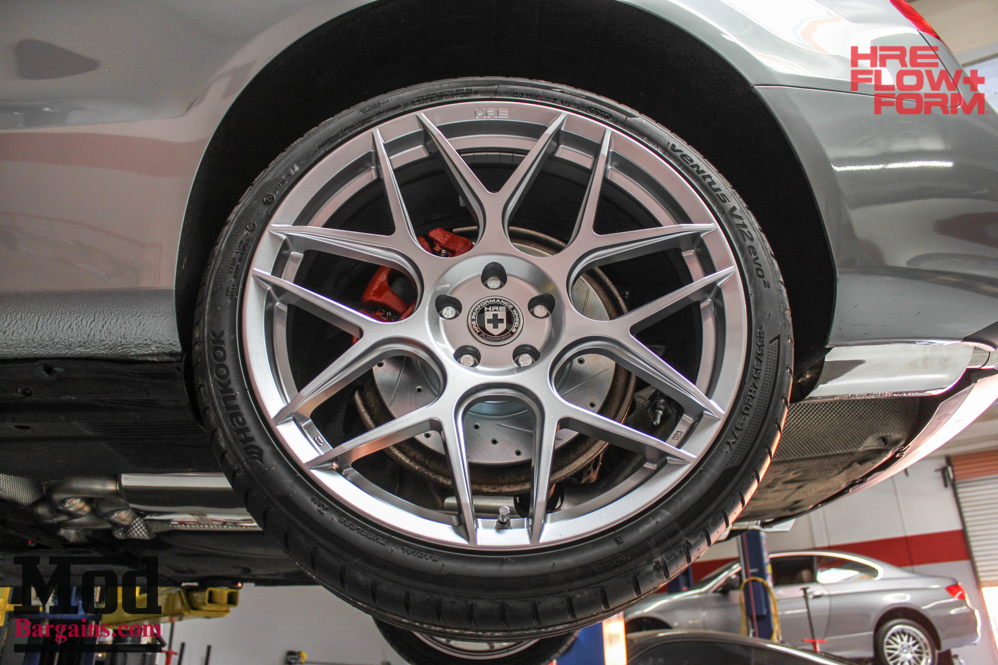Here’s a closeup of the HRE FF01s, wrapped in Hankook Ventus V12 Evo2 tires.