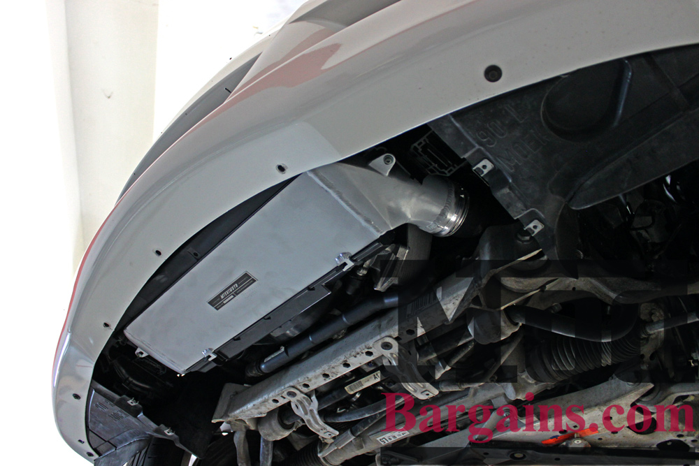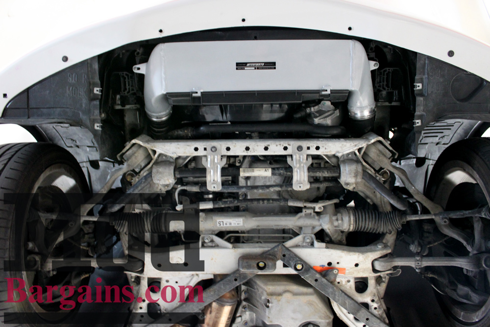 From this view, you can see the FMIC is perfectly at home and bolts up like it always belonged there. We left the undertray off for illustration purposes, but once installed, your FMIC will be almost totally invisible.
