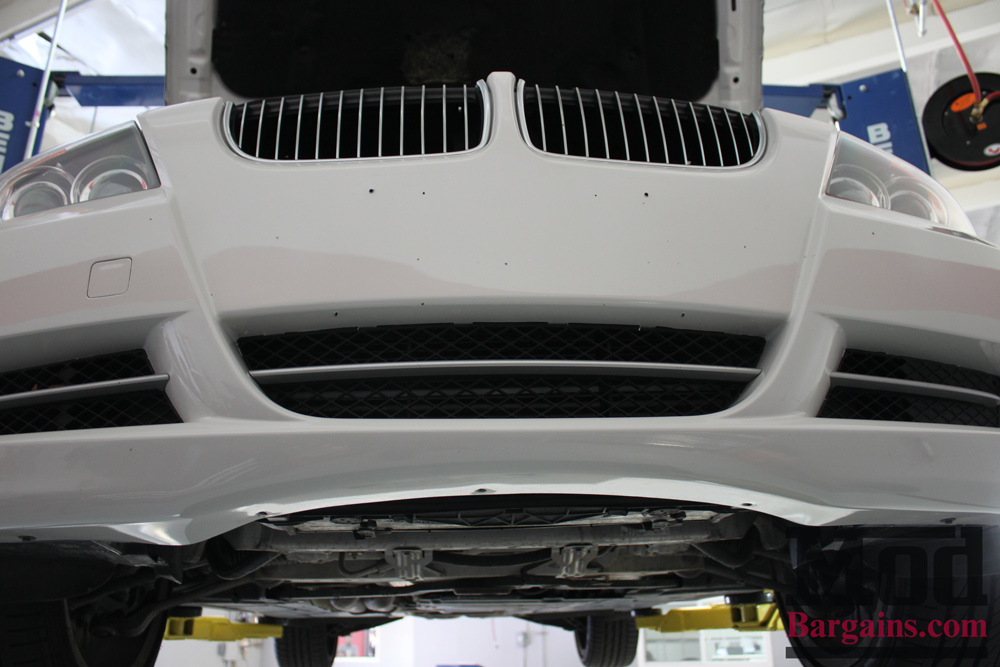 On the BMW E90 335i and BMW E92 335i platforms, the front mount intercooler is really easy to access. These chassis are one of the few turbo cars that doesn’t require you drop the bumper to change it out. Just pull the undertray and the OEM FMIC just drops right out the bottom. There’s quite a few front mount intercoolers on the market at a variety of price points, but we wanted something that would bolt right in but wouldn’t break the bank, and at $600.95, it’s very reasonably priced for a direct bolt on, no-cutting-needed, bigass intercooler.