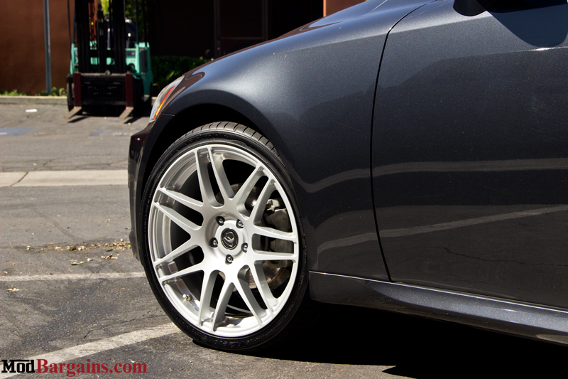 This Lexus IS250 came to visit today and got fitted with some Brilliant Silver Forgestar F14 Wheels! The sporty, 7-split-spoke design of the Forgestar F14 is an excellent fit for the character of today’s Lexus IS, which is different than the character of the IS of just a few years ago. A pretty girl can look extra hot in just the right dress while the wrong one might make her look like she just crawled out of bed with The Crypt Keeper.