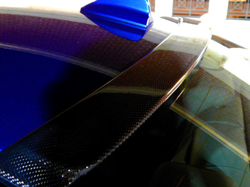 The exterior transformation doesn’t stop up front either. Spicing up the tail end is an M-Tech rear bumper – selecting your bumper and rear diffuser can be as tricky as pairing the right wine and cheese, and this M-tech rear bumper has been fitted with an M-Tech Carbon Fiber Diffuser which is FRP with carbon fiber inlay. Further complimenting the rear aero look is a Megan Carbon Fiber Roof Lip Spoiler and an M-Style Rear Lip Spoiler.