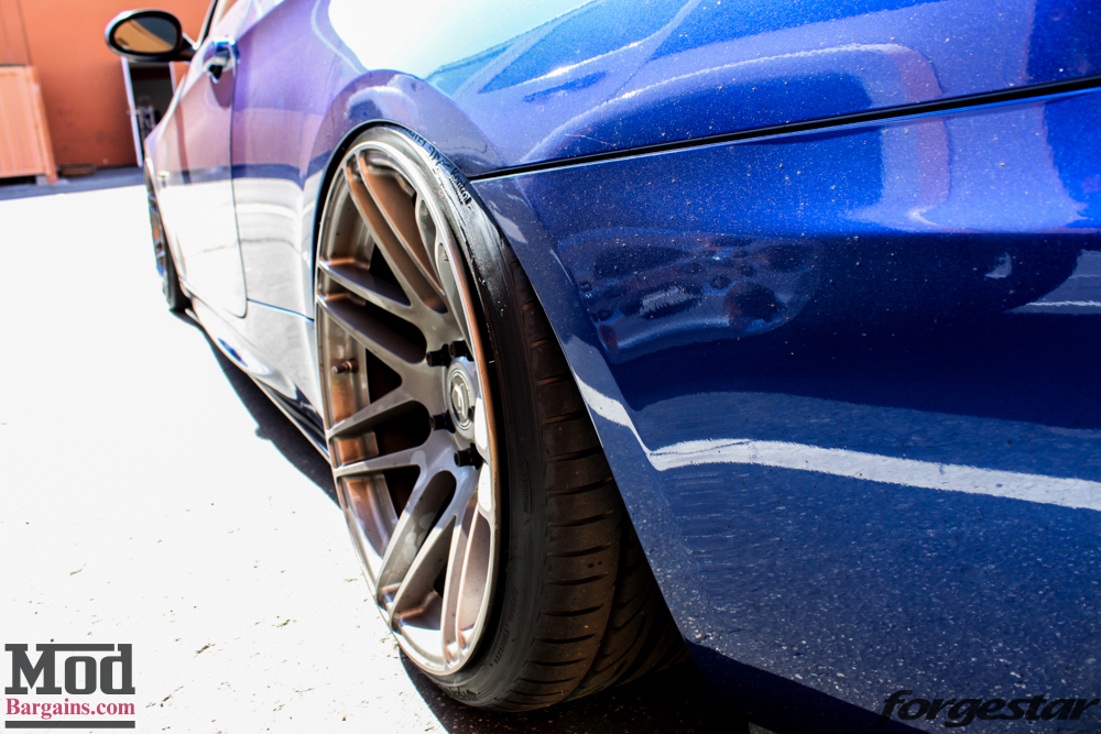 Since we showed you the car last, the suspension has changed dramatically. The old coilovers and wheels are gone, instead the car now rides on a cloud. Giving the car a super aggressive look are a set of Forgestar F14 Super Deep Concave Wheels for BMW, spec’d out at 19×9.5 / 19×11 (this fitment is VERY hard to do on a 328i/335i – click HERE to find out what it takes to run SDC on all four corners on a NON-M E9X) and finished in gunmetal. Giving the car that sexy drop is a AirRex Air Suspension system for BMW E9X. The eagle-eyed among us might also spot the Black painted Brake Calipers and the StopTech Drilled Brake Rotors for BMW E92 really complete that part of the car.