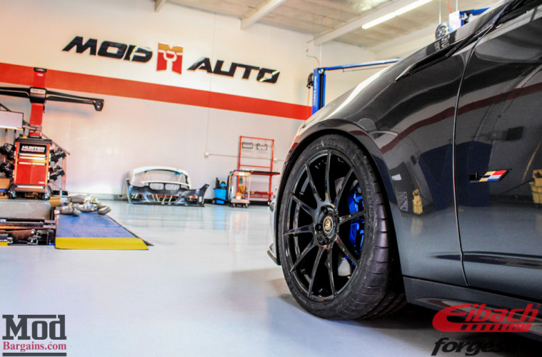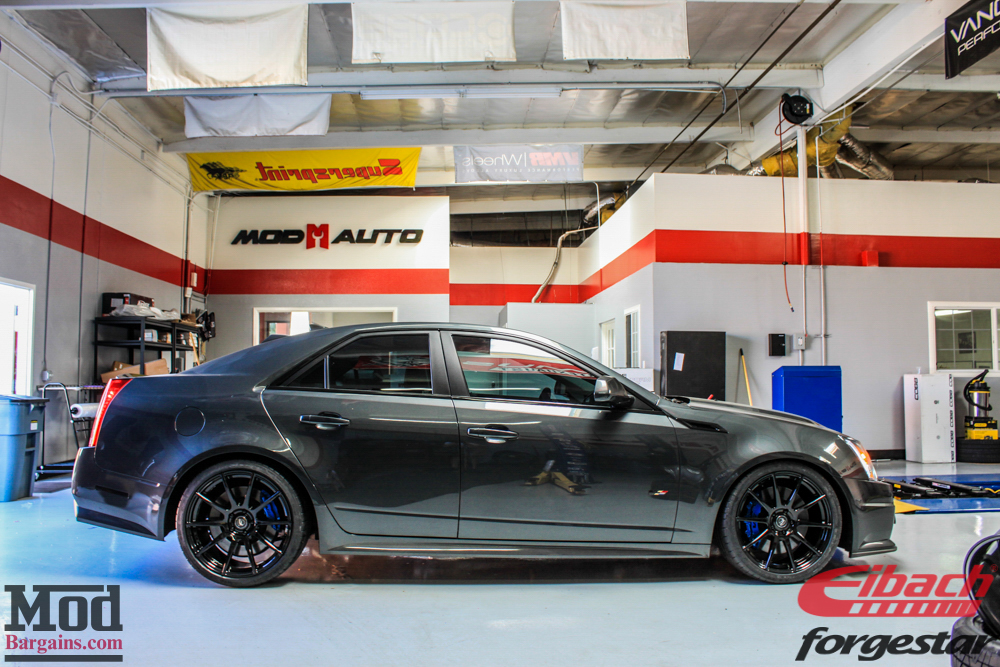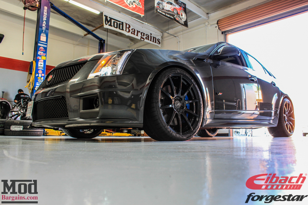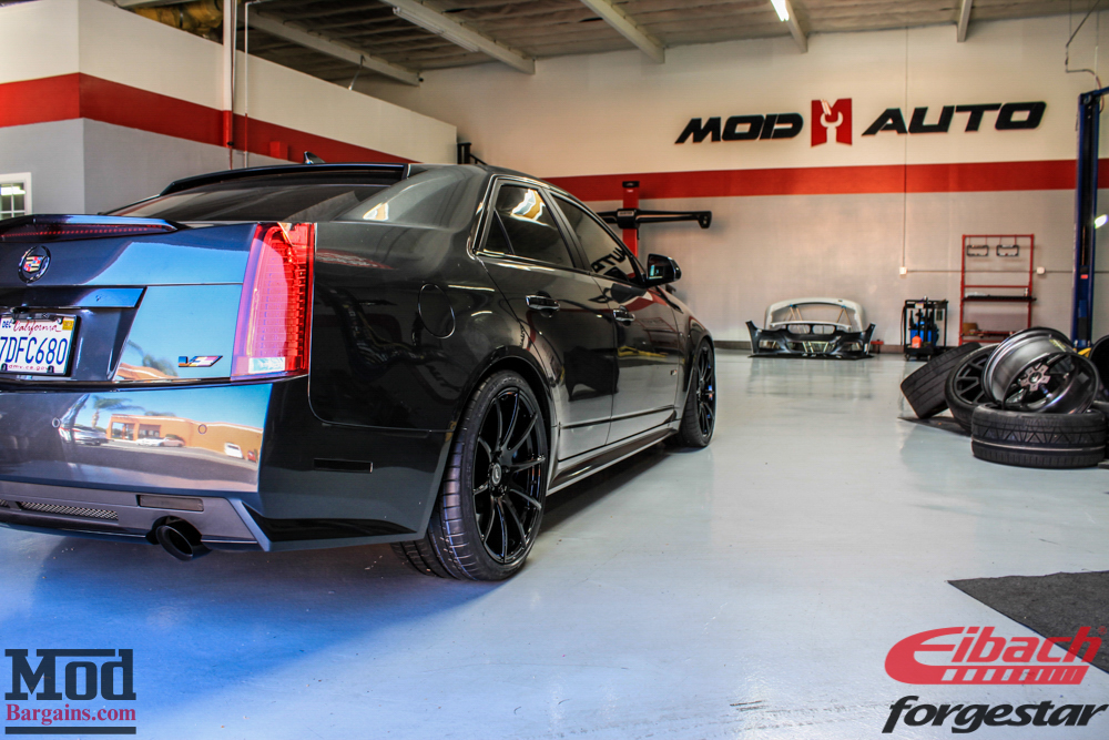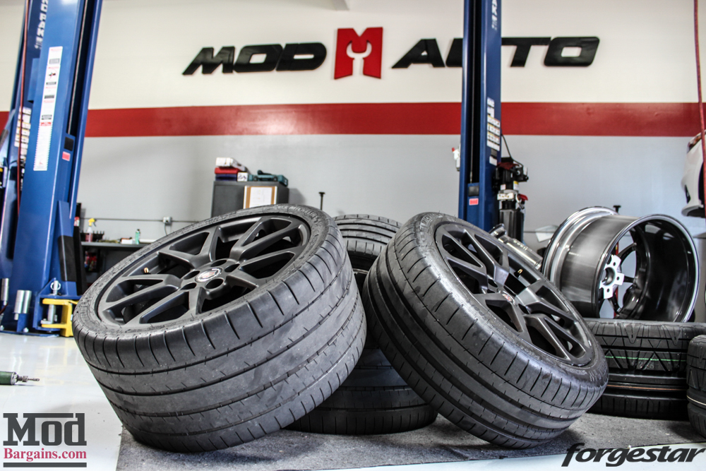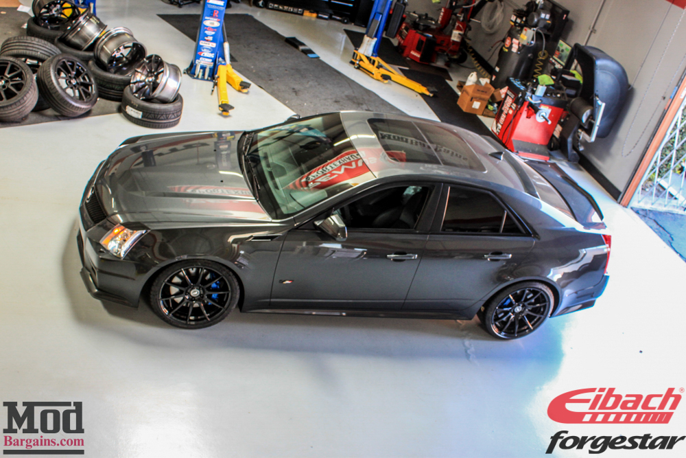 Mike set Kyle up with the same Forgestar fitment he rocks on his own personal CTS-V –Forgestar CF10s in semi-gloss black. Actual gloss black scratches super easy, so semi-gloss is the preferred finish for a glossy black wheel that’s easy to care for.