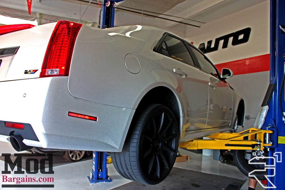 The install team at ModAuto made quick work of the install, fitting the CTS-V with new brakes in almost no time. While most people know us for bolt on performance parts, we also offer some maintenance services for performance cars like brake service (with performance pads/rotors etc), oil changes (full synthetic) and walnut blasting for BMWs.