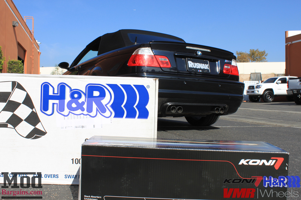 Christian first brought in his E46 BMW M3 Cabrio a few weeks back – he came in to pick up a set of new wheels for BMW E46 – a set of 19in VMR V710 wheels – to give his freshly-acquired M3 a fresh aesthetic with a little help from Sr Mod Expert Elliott Goodman. But we didn’t stop with just a set of wheels- as always, wheels look best when paired with a drop – and that’s precisely what we did. On an older car like an E46, the OEM shocks are probably long-since dead, as the lifetime of a shock is only 50,000mi, or 5-10 years – meaning the majority of original E46 M3 shocks out there are probably blown. Which is why Elliott suggested totally overhauling the E46 suspension – since we didn’t want to go with all-out coilovers, retaining the OEM setup was the way to go.