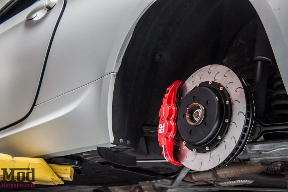 BMW_E92_335i_Remus_Quad_APRacing_BBK_AvantGarde_M310-2To get things started, we installed an AP Racing 6-Piston Front Big Brake Kit for BMW E92 paired with a matching AP Racing 4-Piston Rear Big Brake Kit for BMW E92 to ensure the turbo six under the hood never gets the car moving faster than it can bring itself to a stop.