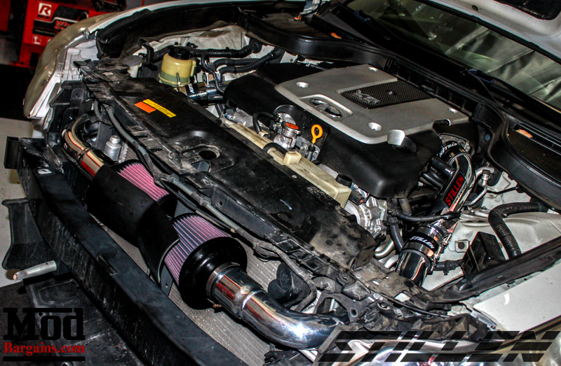A upgraded intake for G37 and exhaust for G37 was just what the doctor ordered- Mod Expert Alan recommended that Daryl go with a Stillen Gen III intake system for G37, unlocking an additional 14whp from just the intake alone. With the intakes moved ahead of the radiator, this is a true cold-air intake system.