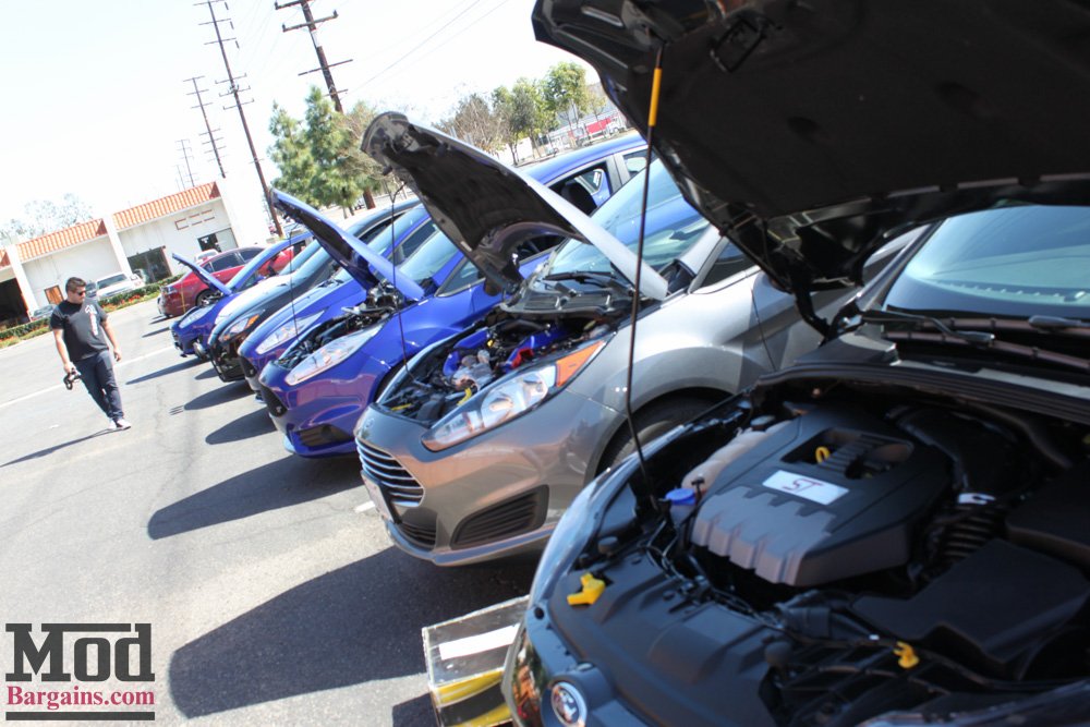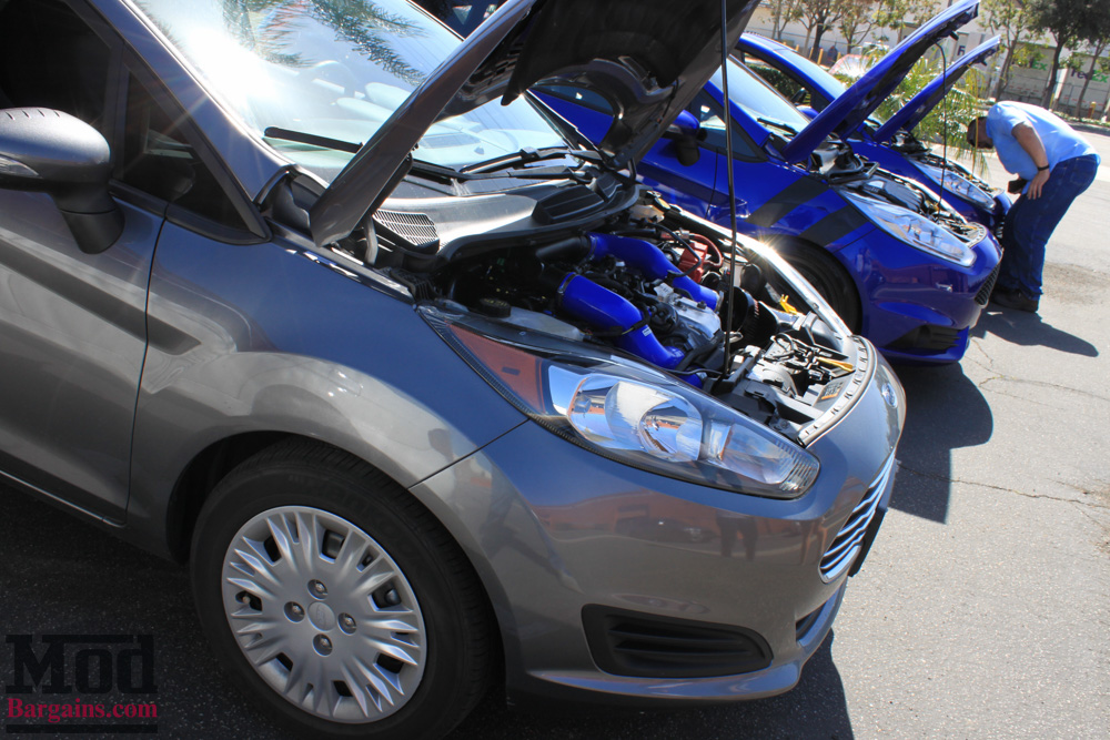 We had our first EcoBoost 1.0L show up – this Fiesta sFe already sporting all kinds of engine bay candy.