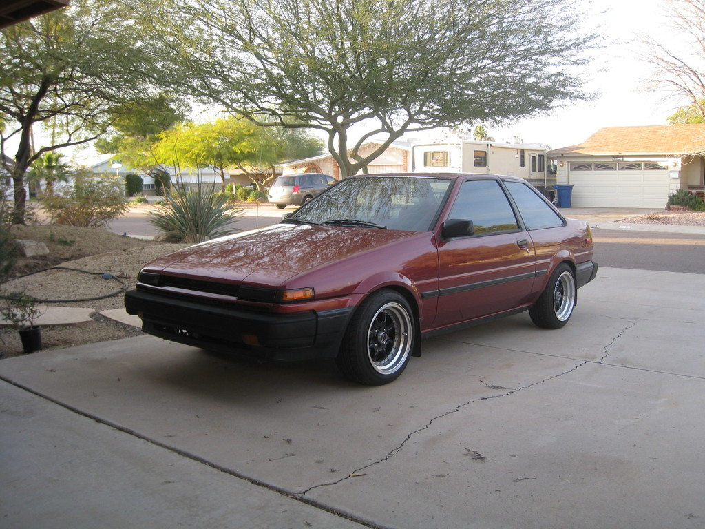 The first Drift Showoff took place out at Irwindale Speedway, with three Japanese Pro Drifters and their cars flown over from Japan just for the event – and I still remember Benson Hsu in his AE86 “Hachi Roku” (Japanese for 86) Corolla GT-S took home the trophy at the first ever Drift Showoff. And all of a sudden, the quirky and underappreciated little 1984-87 Corolla became a whole lot more valuable. With the nicest examples commanding barely $900 just a year or so before, the AE86 more than tripled in value. Today I lament this when I look forlornly at used-car for-sale ads, we even have a name for it – “Initial D Tax” or “Drift Tax”… a condition which also afflicts the S13 and S14 Nissan 240sx. And with that in mind, as a young enthusiast, when I happened across a very Maroon 1987 Corolla SR5 Notchback – with ONE mirror (factory cheapness FTW!) at just $1400, an AE86 became a part of my life for a brief, but very special time.