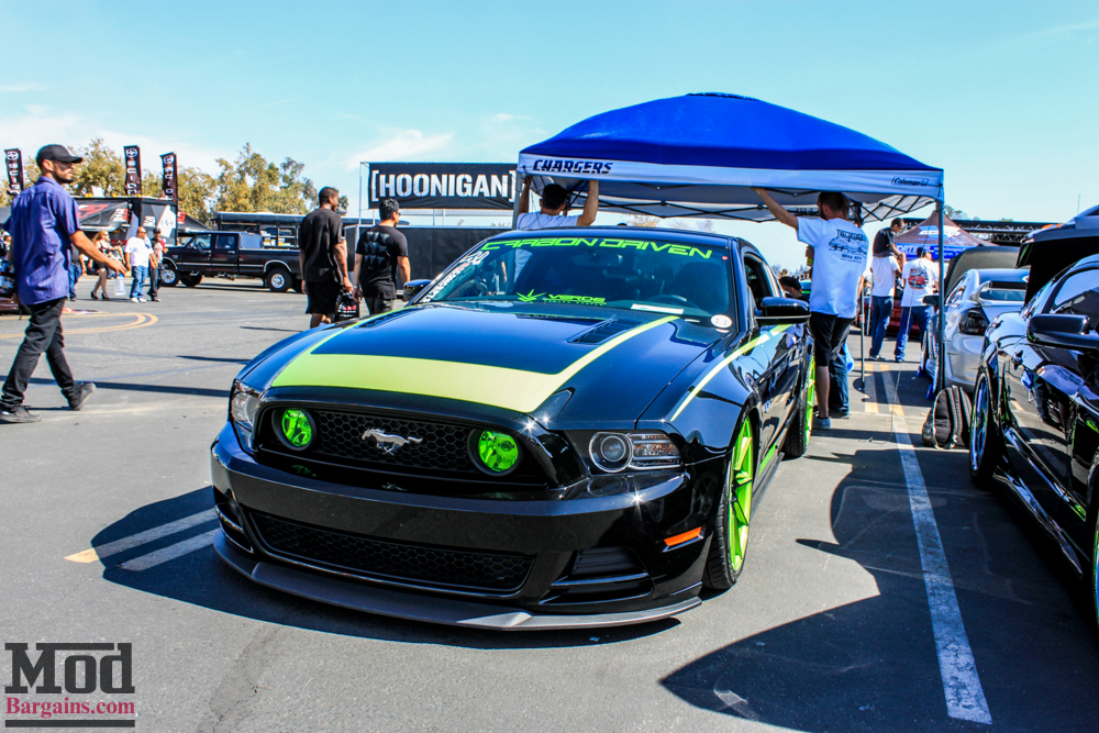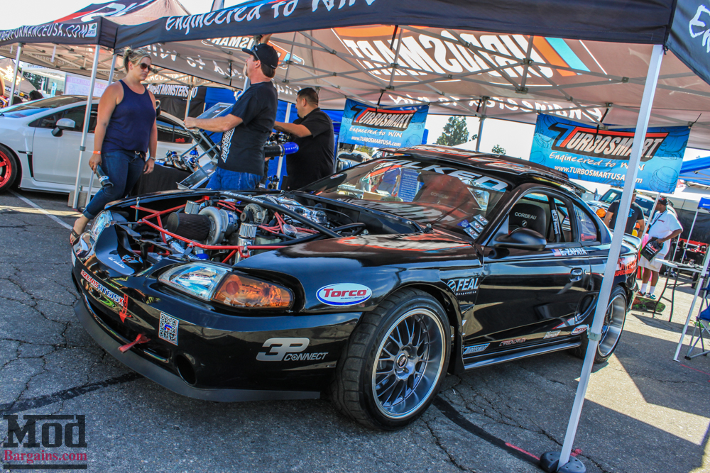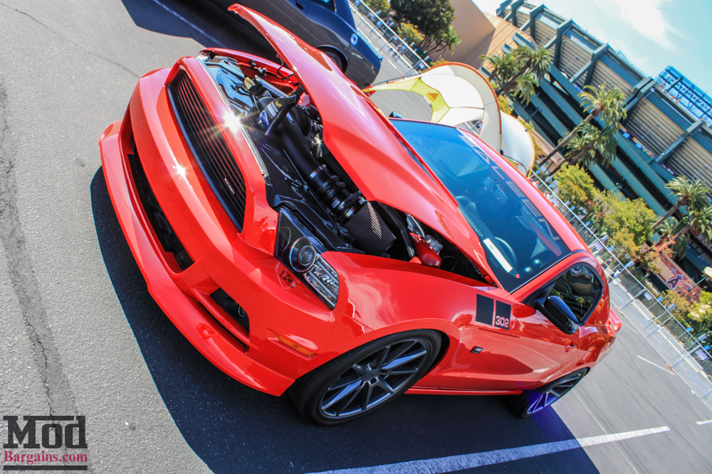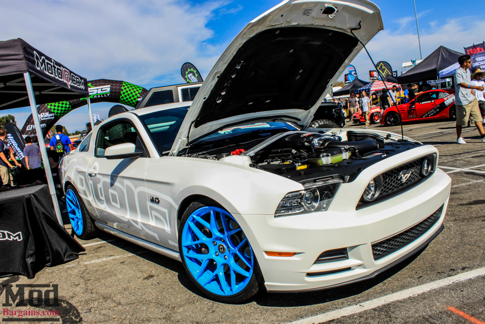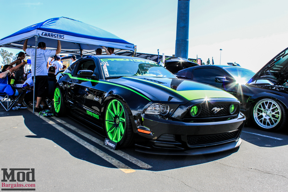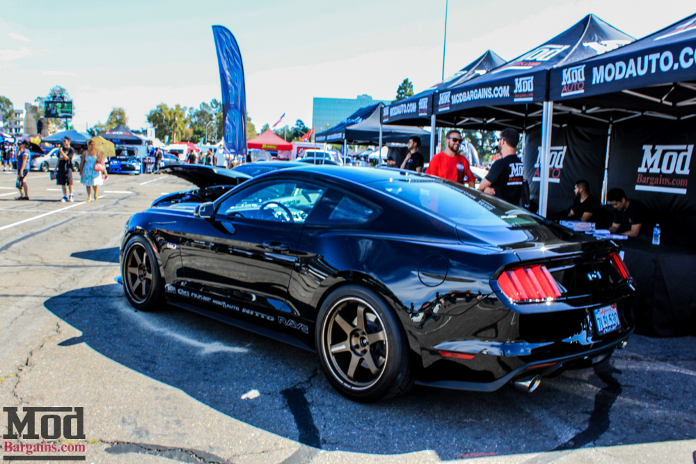 We also had this lovely 2015 Mustang GT in our booth rolling on Eibach Springs with Genuine RAYS Engineering TE-37s wrapped in sticky Nitto tires.