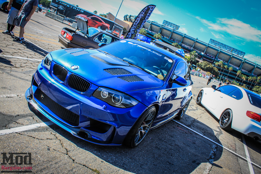 This Performance Blue 1M (we think it’s a 1/499 1M at least, because of the fenders) – with custom projector headlamps and a vented GTR-style hood, this is one E8X 1-series that’ll break necks at any show… but just like our Project Fiesta ST, we can’t figure out if it’s blue or purple. It’s blurple.