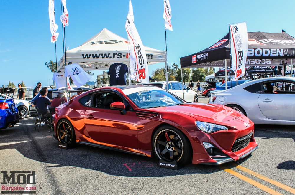 Over at the RS-R Suspension booth, our friends at Rally Innovations were also there – a trio of different FR-Ses were on display- the silver car boasted a Coyote 5.0L V8 under the hood, whereas the yellow Scion FR-S RS 1.0 is one of the few we’ve seen NOT on stock wheels.