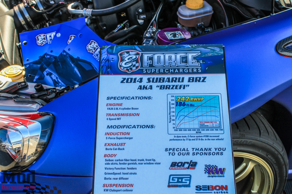 Even old-school muscle modded Edelbrock is in the FR-S game now, their “BRZEFI” boasts a E-Force Supercharger kit to resolve the Toyobaru’s power defecit.