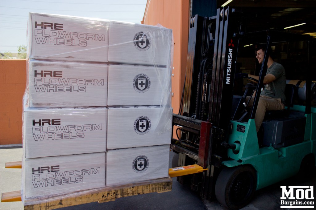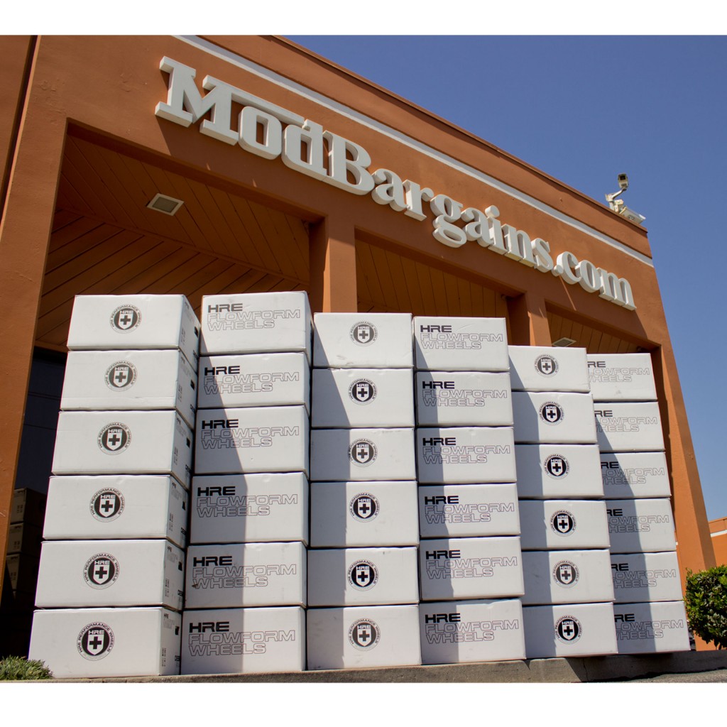 At ModBargains, we know what the name HRE stands for, their fantastic reputation, and we’re big fans of the fact that these wheels were designed and engineered in the United States. Developed right here in California, down in San Diego-about 70-80 miles south of us here in La Habra. If the quality of the beers coming out of San Diego is any indication, we can continue to expect lots of great things from our southern neighbors. As you can see by the literal TRUCKLOAD of wheels, ModBargains a major stocking distributor of HRE Flow Form Wheels, meaning we’ve got quite a few of the most popular fitments and finishes in stock, on hand, right here in our warehouse, ready to ship to you.