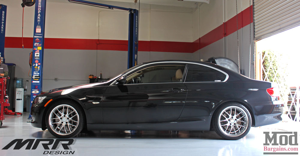 Jeff R’s ’07 E92 BMW 335i rolled into the shop on a set of MRR Wheels GT-7s at stock ride height, just crying out for a drop – today it was going to get just that among a slew of other mods thanks to Sr Mod Expert Alan Wei. The photo above is the “before” photo – by the end of this article you’ll be looking at a totally different BMW 335i.