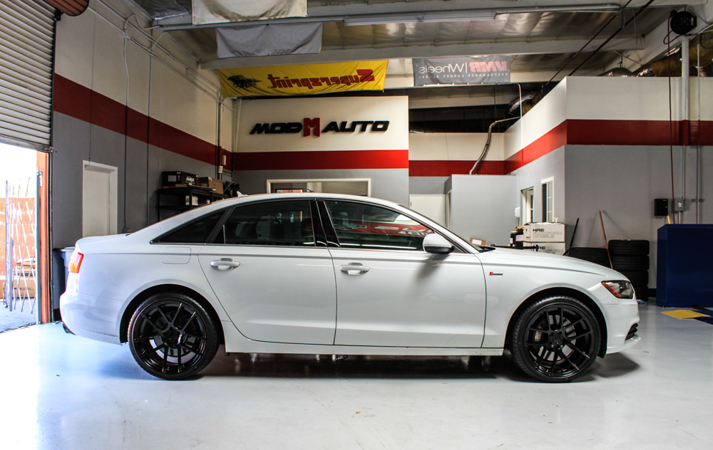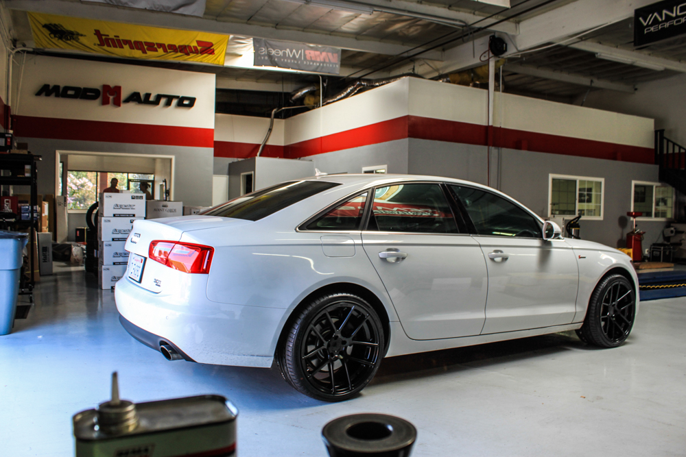 Tanner Pearson wanted a darker wheel, like black to contrast against the white of the car, but a straight up gloss wheel tends to scratch easily and be hard to care for, so a set of Matte Black Avant Garde M510 Wheels for Audi was an ideal pairing for the A6.