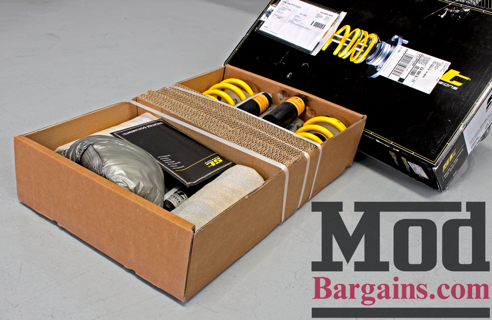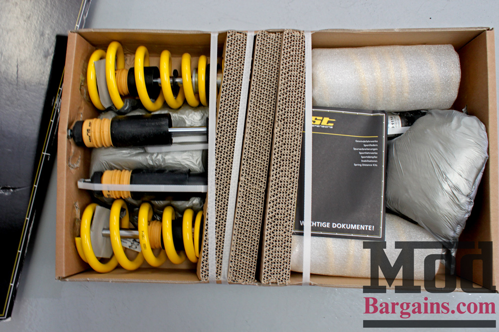 When you unbox your ST Suspension Coilovers, they’re packed just like this – you’ll see a little envelope with the directions, user manual and your stickers inside, as well as your warranty card – so be careful not to toss those! The owner of this A4 chose a set of ST Suspensions XT Coilovers for B8 Audi A4, which feature fixed damping and adjustable ride height. We’re big fans of ST Suspensions products here, as several employee cars ride on them.