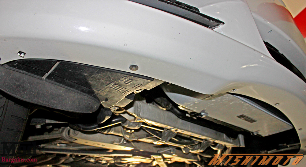 It’s only with a flash that the Mishimoto FMIC just starts to peek through from behind the grille.