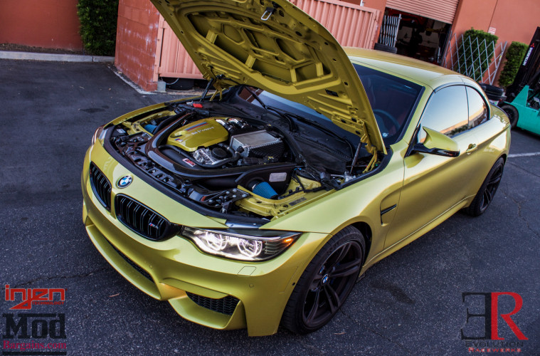 F83 BMW M4 with Injen Intake for BMW S55 & Evolution Racewerks S55 Chargepipes + Painted Engine Cover