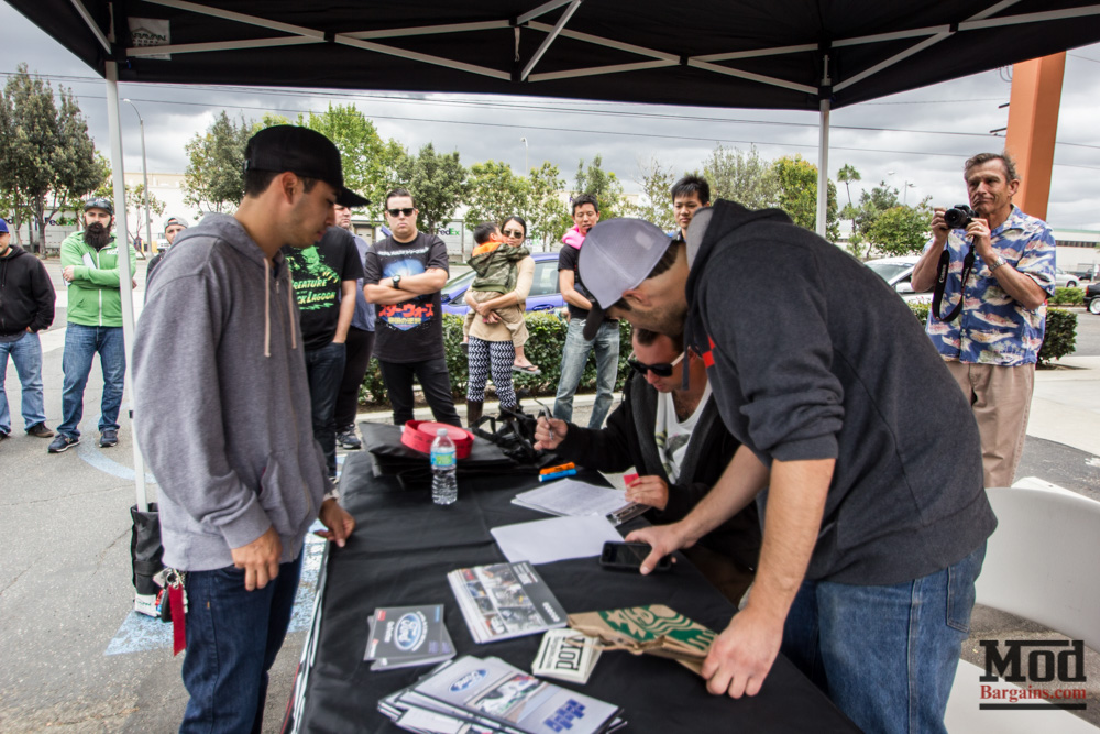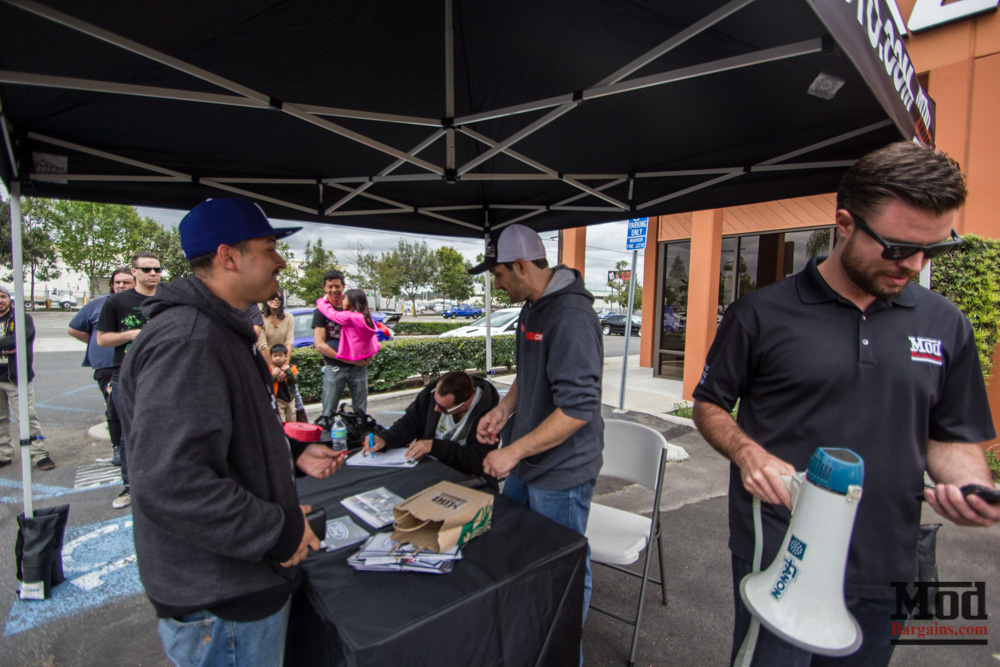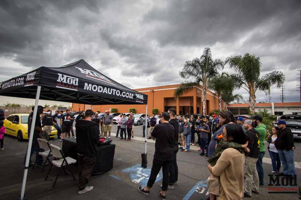 This was the first time we’ve been able to offer a giveaway, and since we hit our 2nd tier goal of 40 cars, we were able to give away a free set of Rotors + Pads from R1 Concepts, a $75 Store Credit to ModBargains for merchandise and a $150 installation credit – plus we had some pretty nice swag bags put together for everyone.