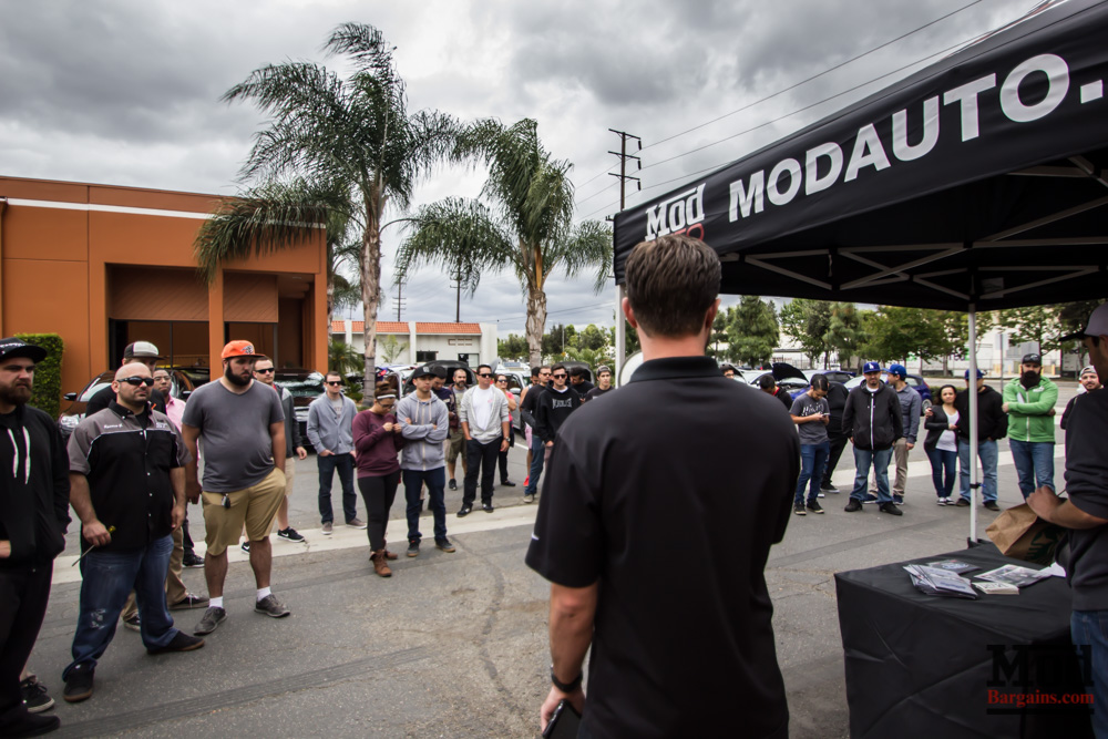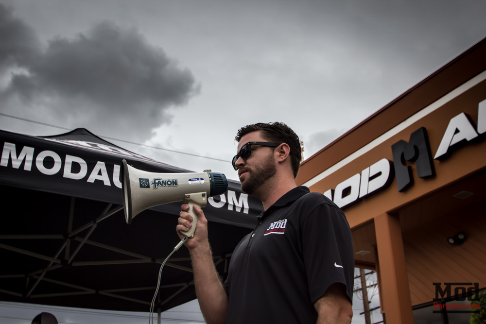 After everyone had showed up and entered the raffle, ModBargains / ModAuto CEO/Co-Founder Mike Brown busted out the megaphone to say a few words and ensure everyone was able to hear their numbers.