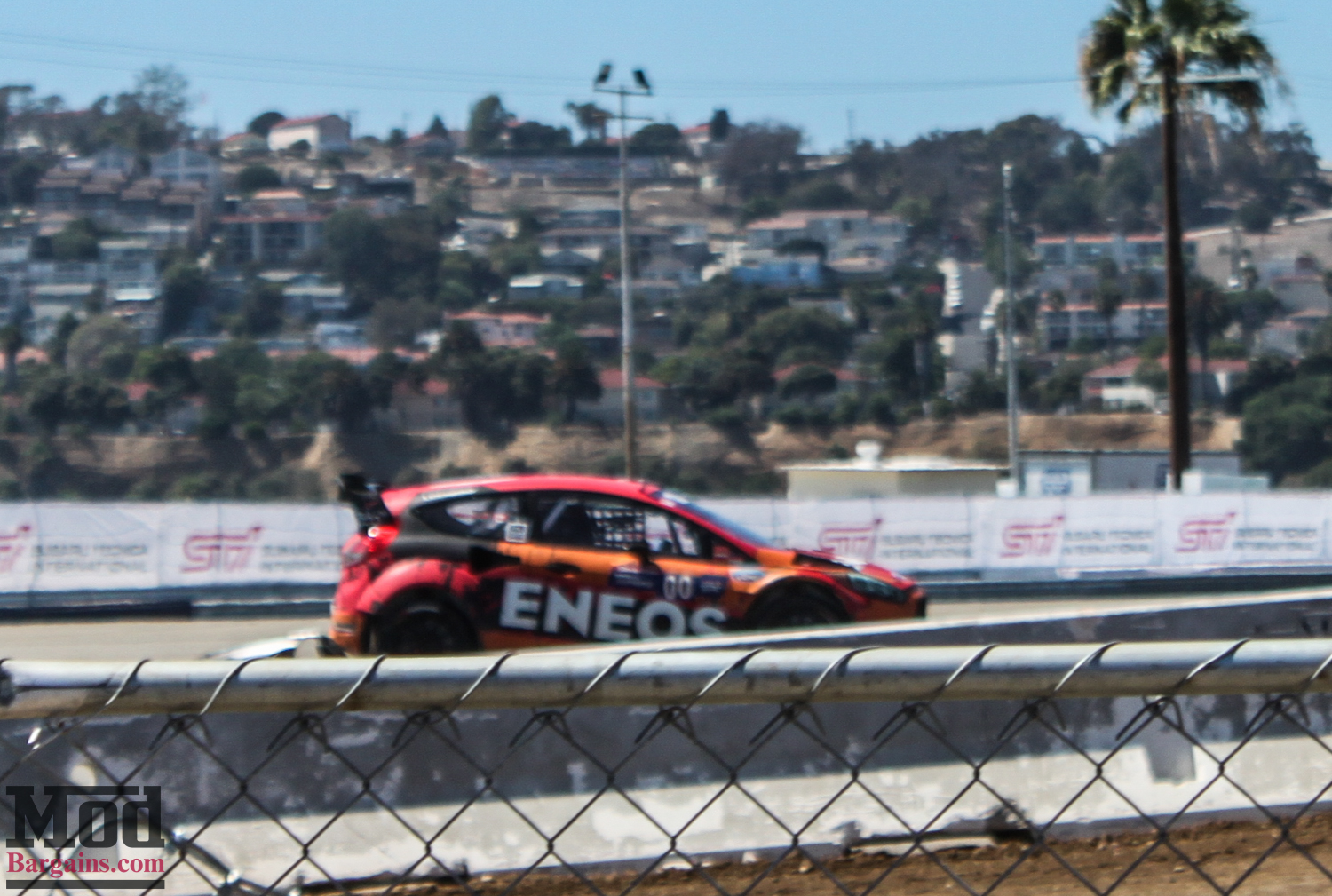 We caught Austin Dyne pulling his Fiesta ST back into the pits, snagging this epic shot of the car in the pits with PORT OF LOS ANGELES framed perfectly behind it.