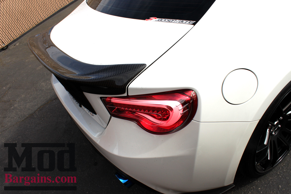 The Carbon Fiber Rear Bumper Skirts for FR-S/BRZ (RCRS style) also help give the tail a slightly more aggressive edge.