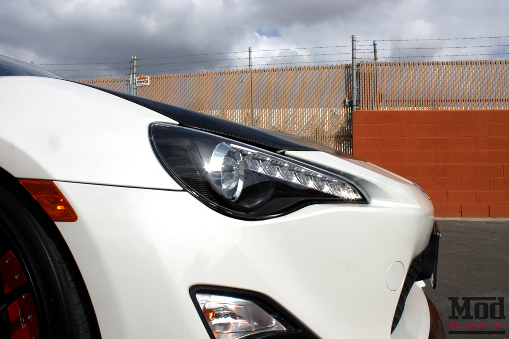 scion-frs-dan-gray-sc-winjet-valenti-004Next on the list was a rear spoiler. Dan opted for a CFW Style Carbon Fiber Trunk Spoiler for Scion FR-S/BRZ – this wing offers ducktail type styling but without the strakes of other designs for a cleaner look.scion-frs-dan-gray-sc-winjet-valenti-011 scion-frs-dan-gray-sc-winjet-valenti-019Then of course, were the Winjet Projector Headlights for 2012+ Scion FR-S Subaru BRZ – giving this beauty the “JDM” look, and the black housings complement the white/carbon fiber theme of the car beautifully.