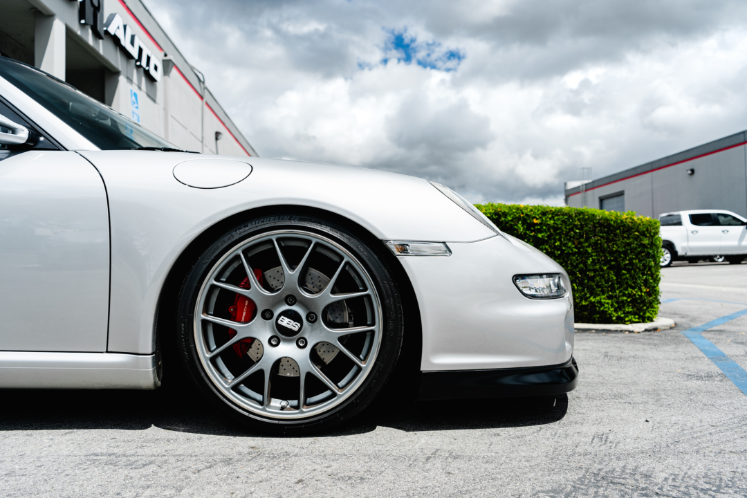 Next on the list are the BBS CH-R wheels finished with a satin titanium face and polished lip. These wheels are a perfect fit for the Porsche 997, adding a touch of elegance and sportiness to the overall design. The lightweight construction of the wheels reduces unsprung weight, which improves handling and acceleration. If you’re looking for a high-quality aftermarket wheel that can handle the demands of performance driving, the BBS CH-R wheels are a great choice.