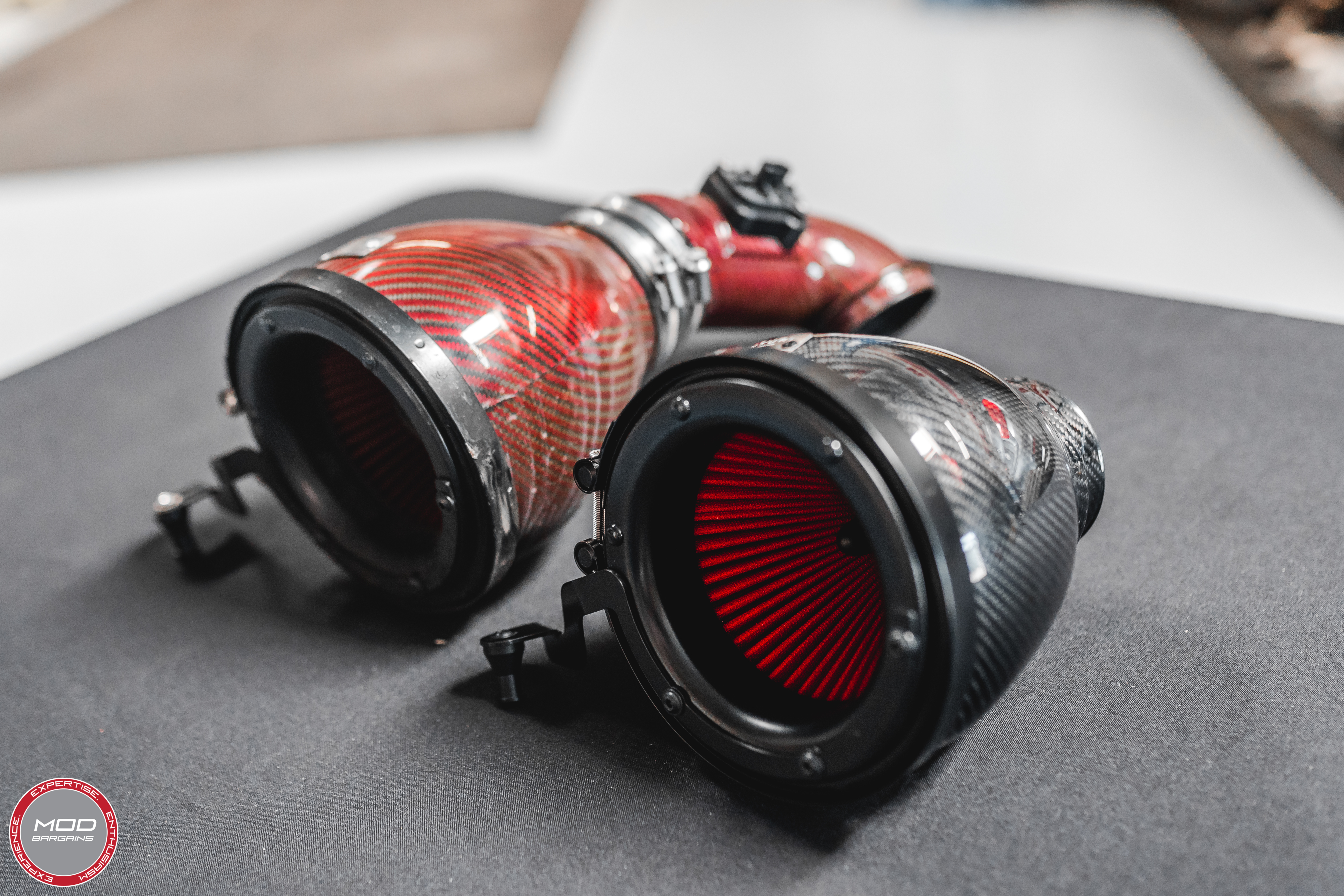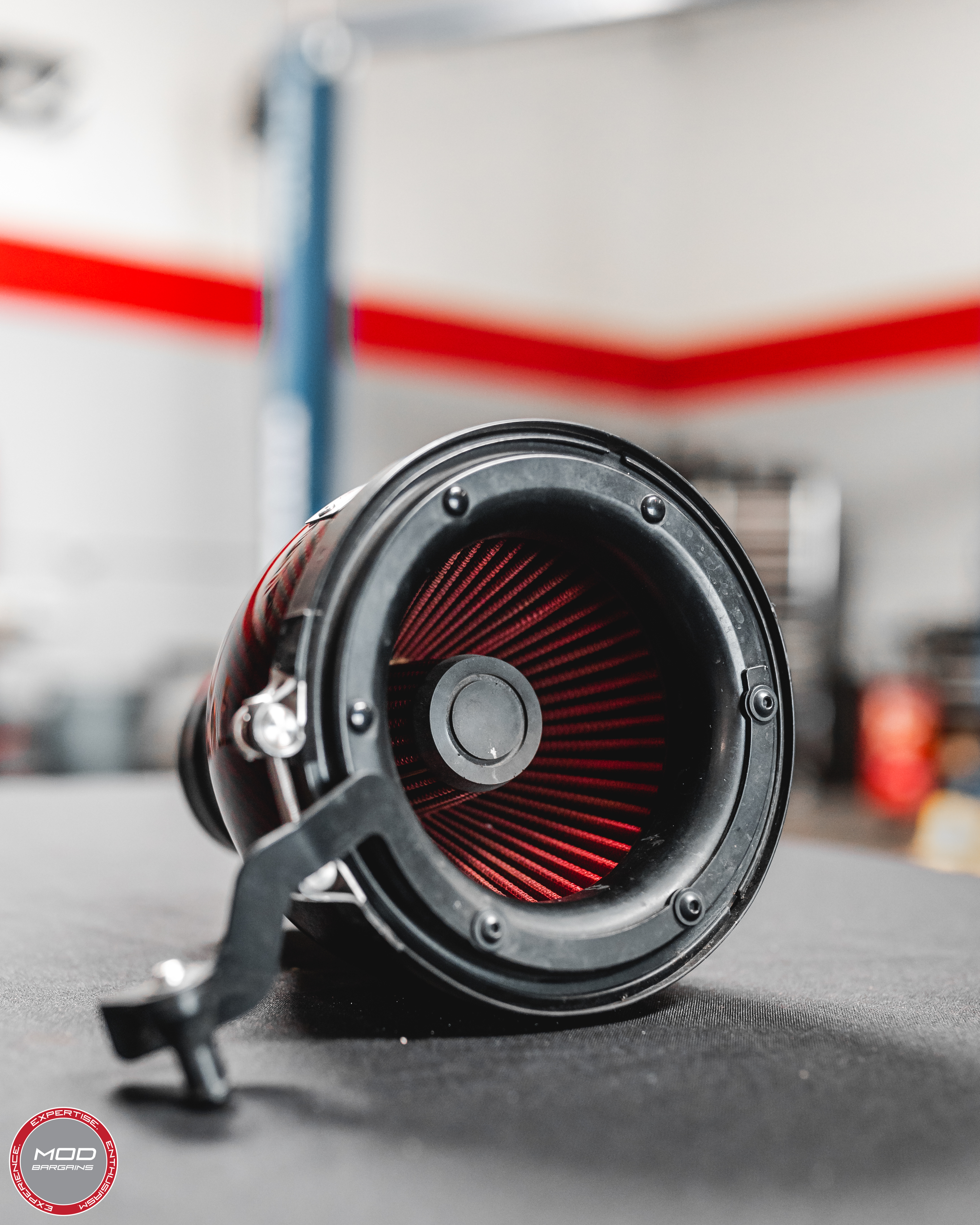 In 2018, the innovative intake developers at Eventuri debuted a brand new bespoke filter design for carbon fiber reverse-mounted intake systems. This new design reportedly increases and optimizes air flow while reducing turbulence, which contributes to an overall increase in engine performance in Eventuri intakes that utilize the reverse-mount system.