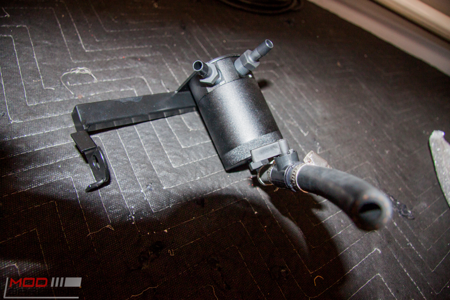 Once installed, this catch can is almost impossible to see, so this is the best view we have of it once installed.