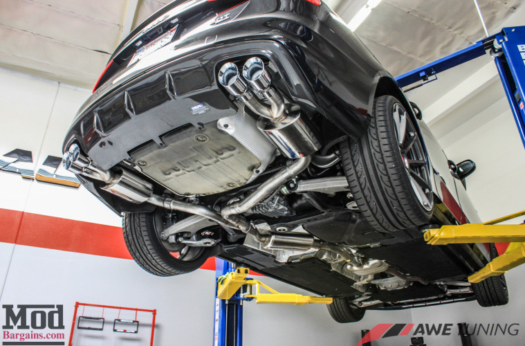 We’re installing a Touring Edition Cat-Back Exhaust for B8 Audi A4 2.0T from AWE Tuning to change both the look and sound of the car – the resonator in the Touring Edition exhaust also translates to a more refined exhaust note suited to street driving.