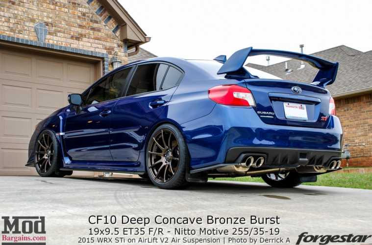 This is a short and sweet one, so the title Quick Snap definitely applies here. Derrick A, a customer of Sr Mod Expert Elliott just picked up a set of Forgestar Wheels for his ‘15 Subaru WRX STi – a set of Forgestar CF10 Wheels for Subaru in Bronze Burst. While we get a lot of BMW and euro business here, the ’15 Rex really looks boss rocking a set of Forgestars.