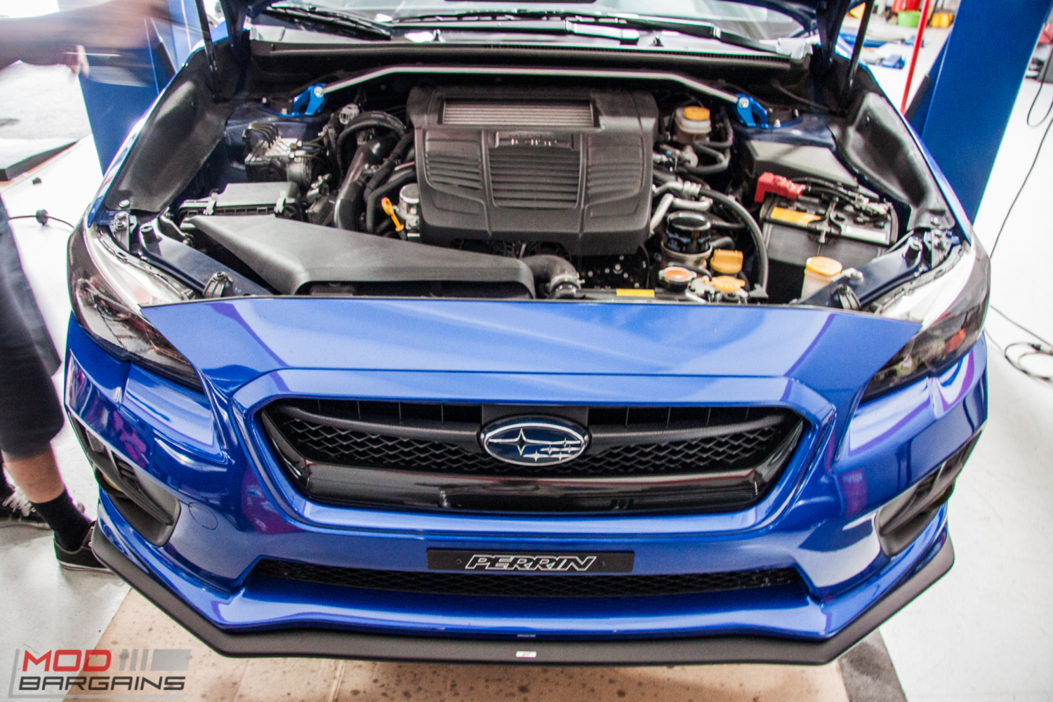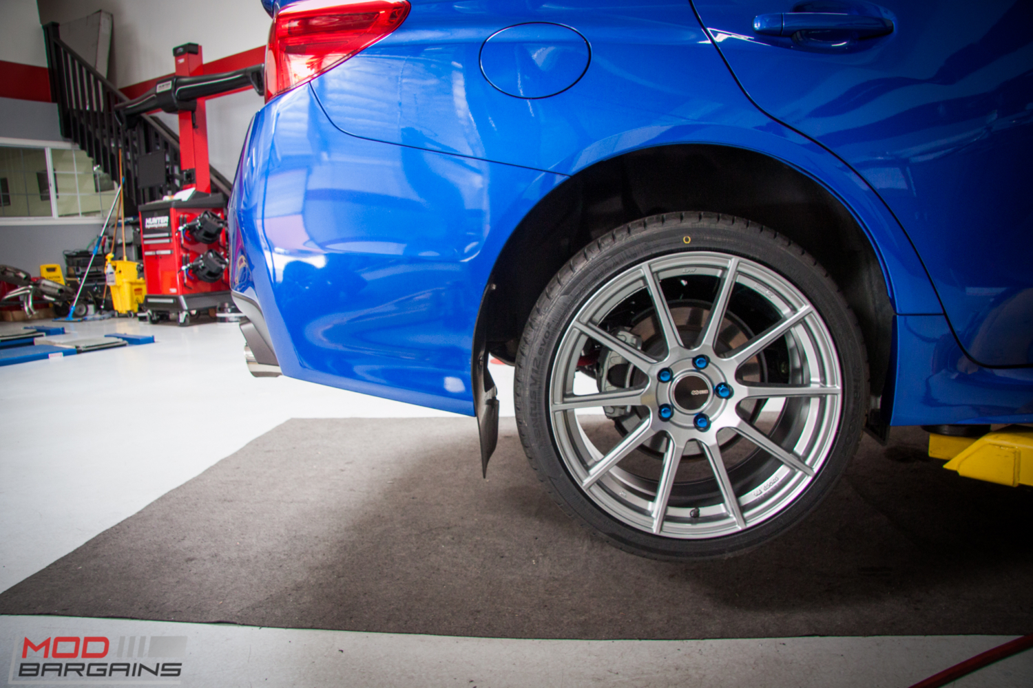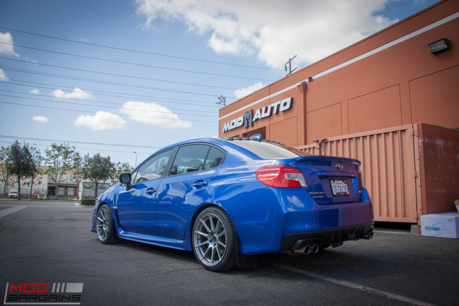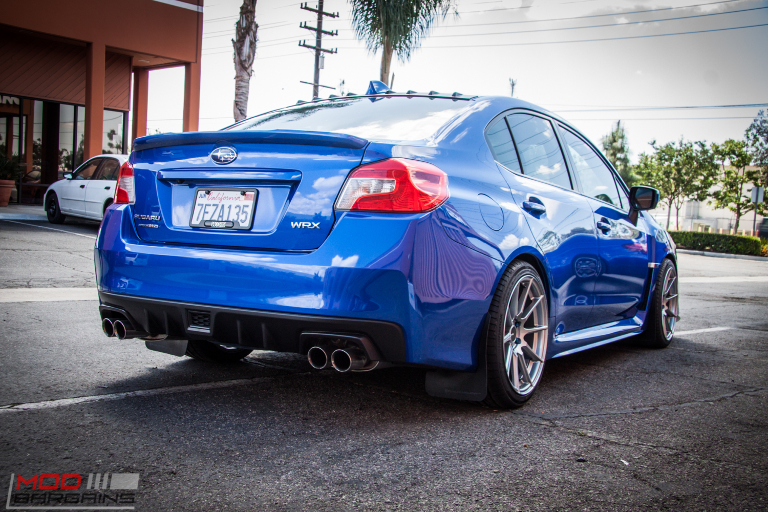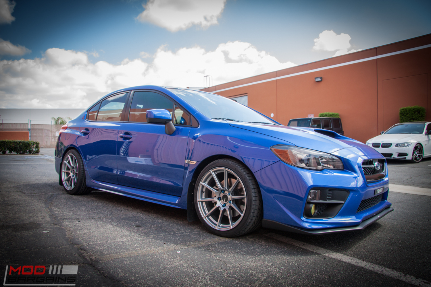While you might not see a Subaru here at the shop every day, we’re certainly no stranger to cars with the Pleiades cluster badge, so it’s kind of cool when we get a 2015 Subaru WRX in the shop. Rocking a Perrin License Plate Delete, Strut Tower Brace, a Front Splitter and Mud Flaps, this WRX already had a few mods here and there when Michael L brought it in to see the Mod Experts, but it was missing two key components from its performance puzzle – wheels and suspension.