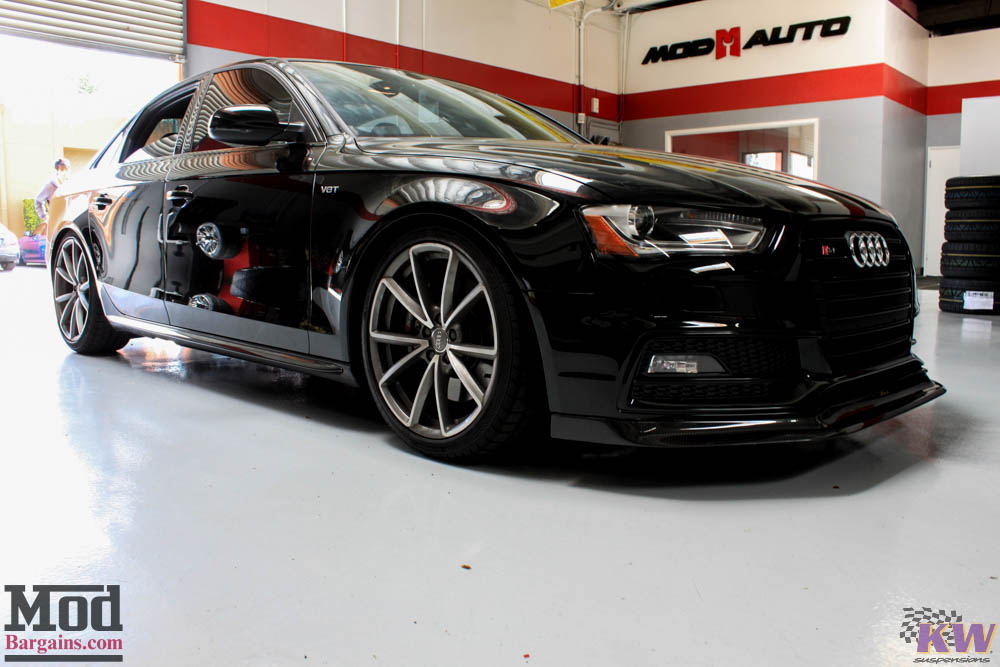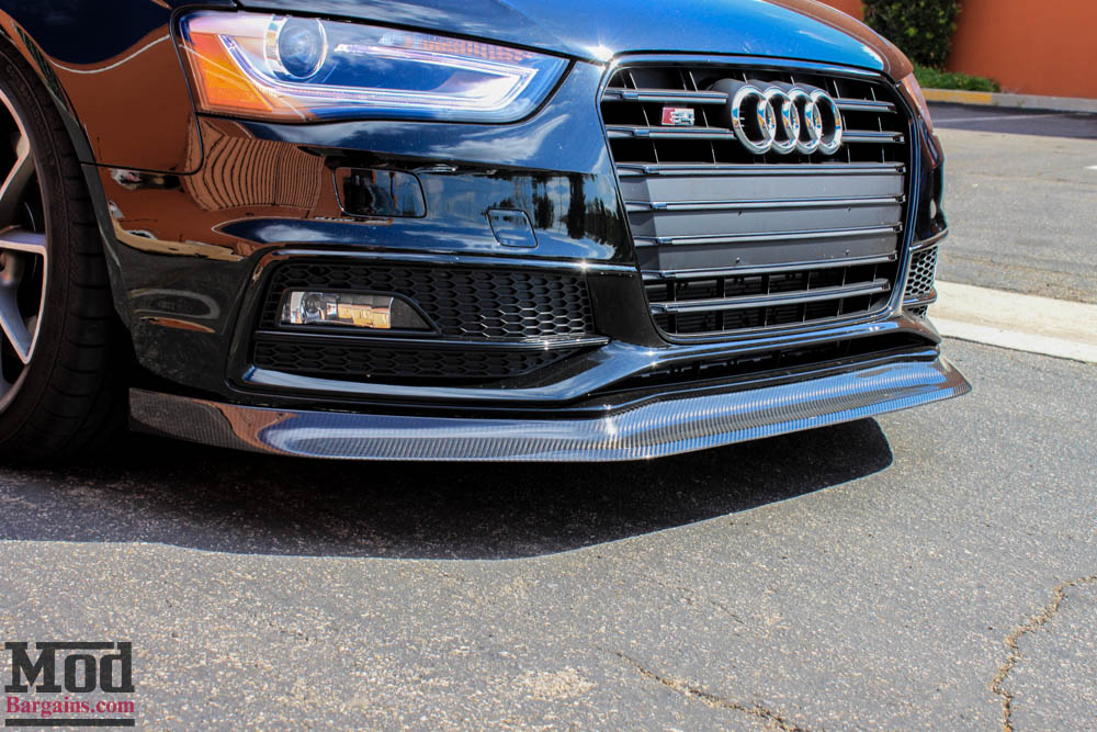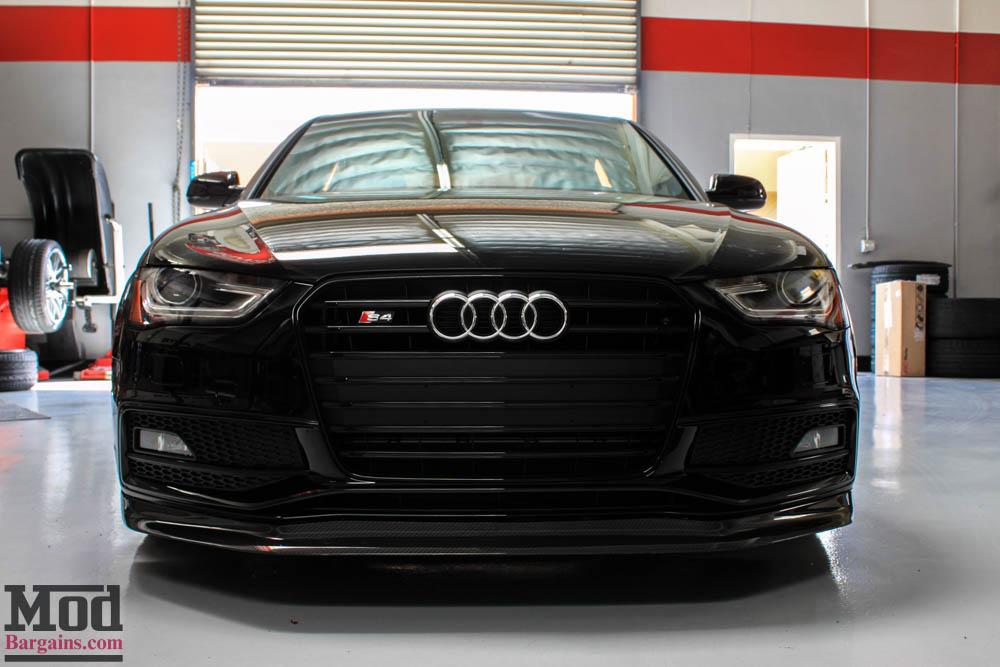 We love seeing cars with a different look here – and this B8.5 Audi S4 came in wearing a really clean Carbon Fiber Front Lip from Endless that really spiced up the B8.5 Audi S4 exterior. The CF lip gave it a hint of aggression, but the OEM ride height left something to be desired in terms of the aesthetics of this S4. ModBargains Co-Founder Ron Hay stepped in to help out with this one to get the Audi riding nice and low.