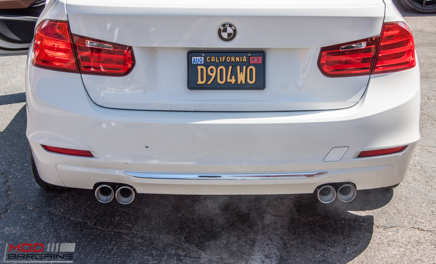 The Remus Exhaust for F30 328i is available with the option for either Chrome or Black Chrome tips, and in this case the black chrome tips look quite sharp.