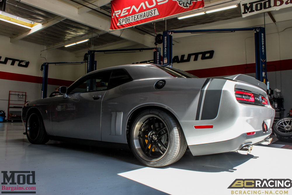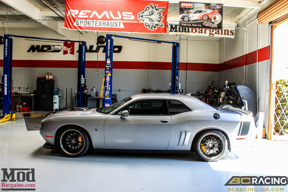 The BC Coilovers for Challenger drop the Challenger suspension just enough that there’s a little bit of wheelgap left to allow for clearance (if you go too low, daily driving can become an “adventure”) while still making the car look incredible, and the much lower center of gravity and superior performance shocks and springs means this beast will bite in the corners rather than rolling around and wallowing about like a pig.
