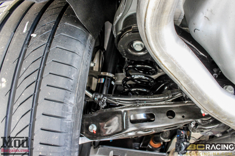 Here’s how the BC Racing Coilovers look installed into the Mercedes Benz-derived rear end of the LX platform.